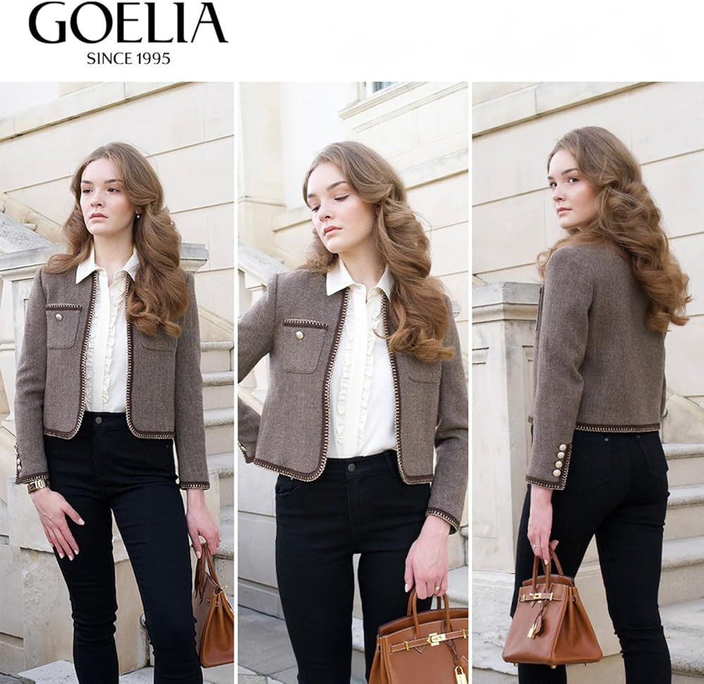 ELEGANT DESIGN - This cropped jacket in tweed with contrast trim combines timeless style with modern flair.Its short design is enhanced by soft, comfortable tweed fabric,making it both stylish and practical.