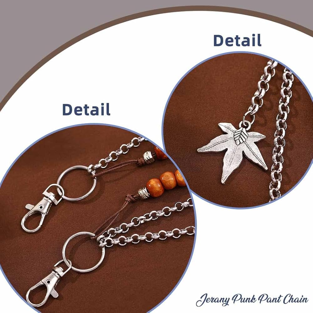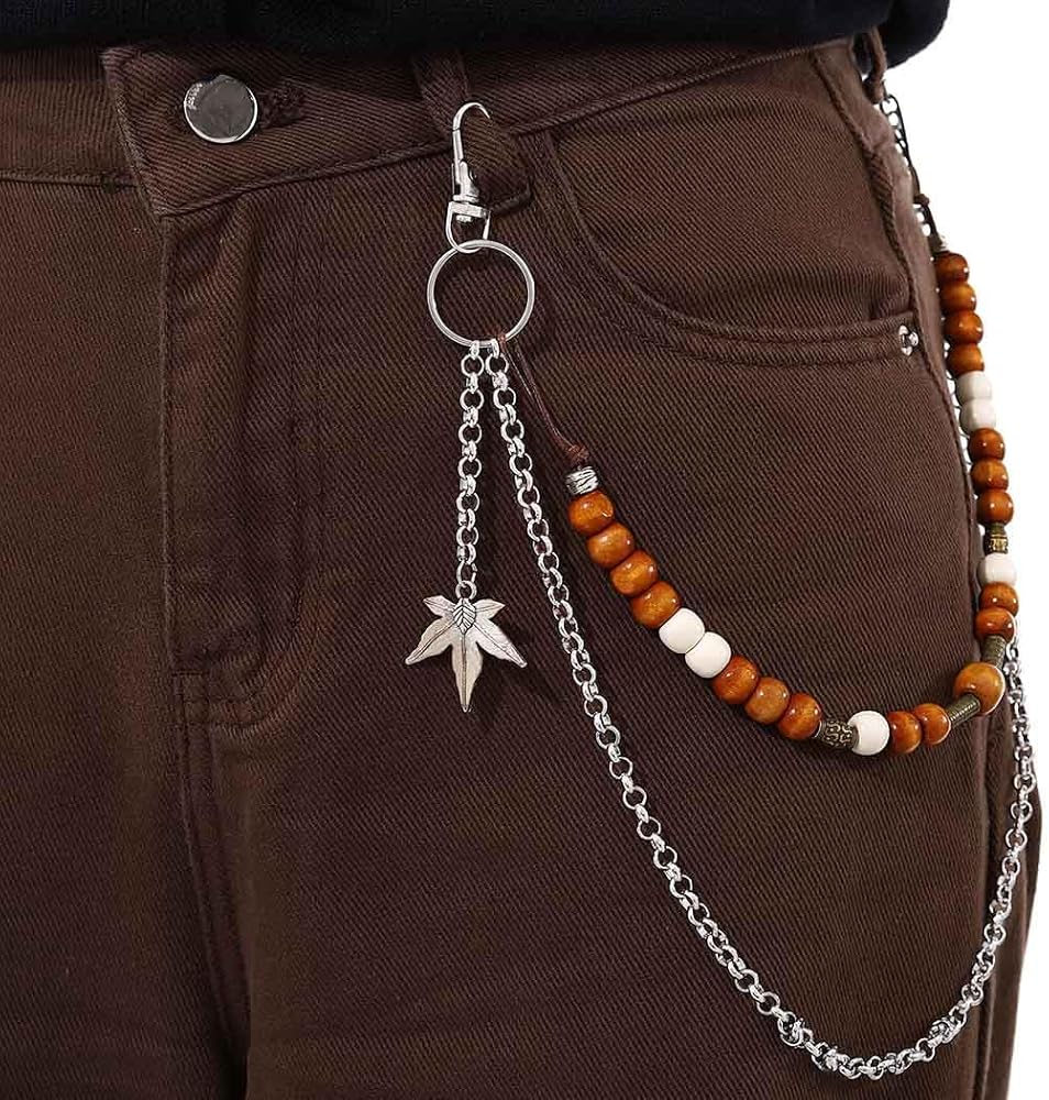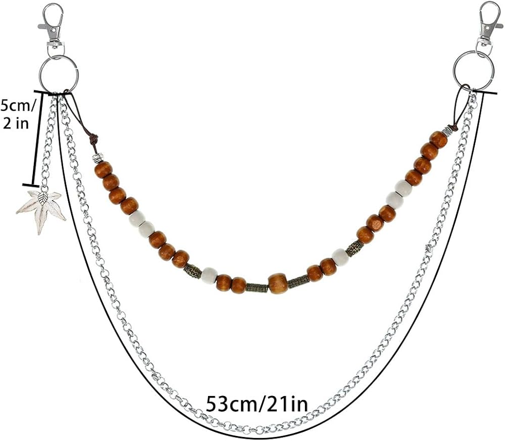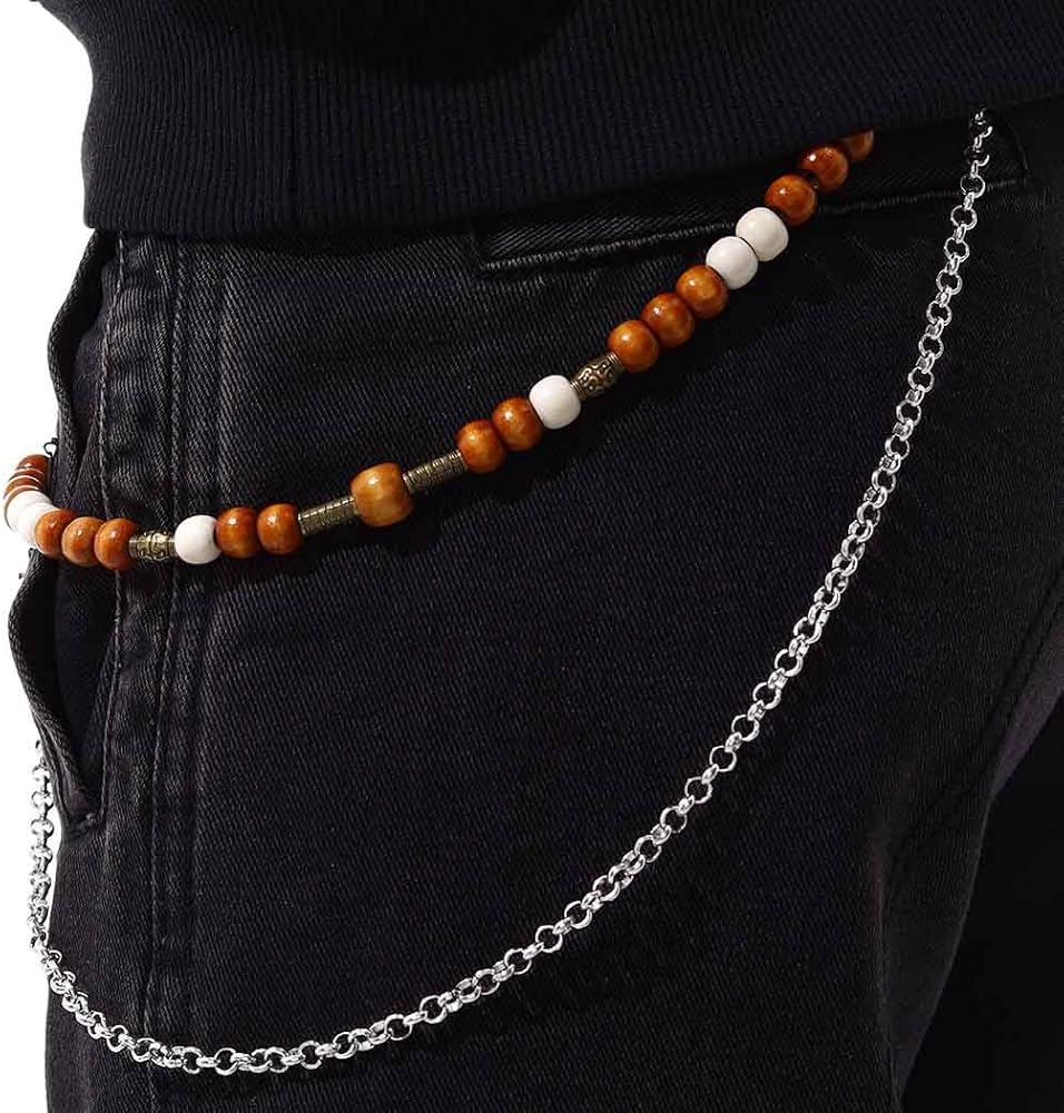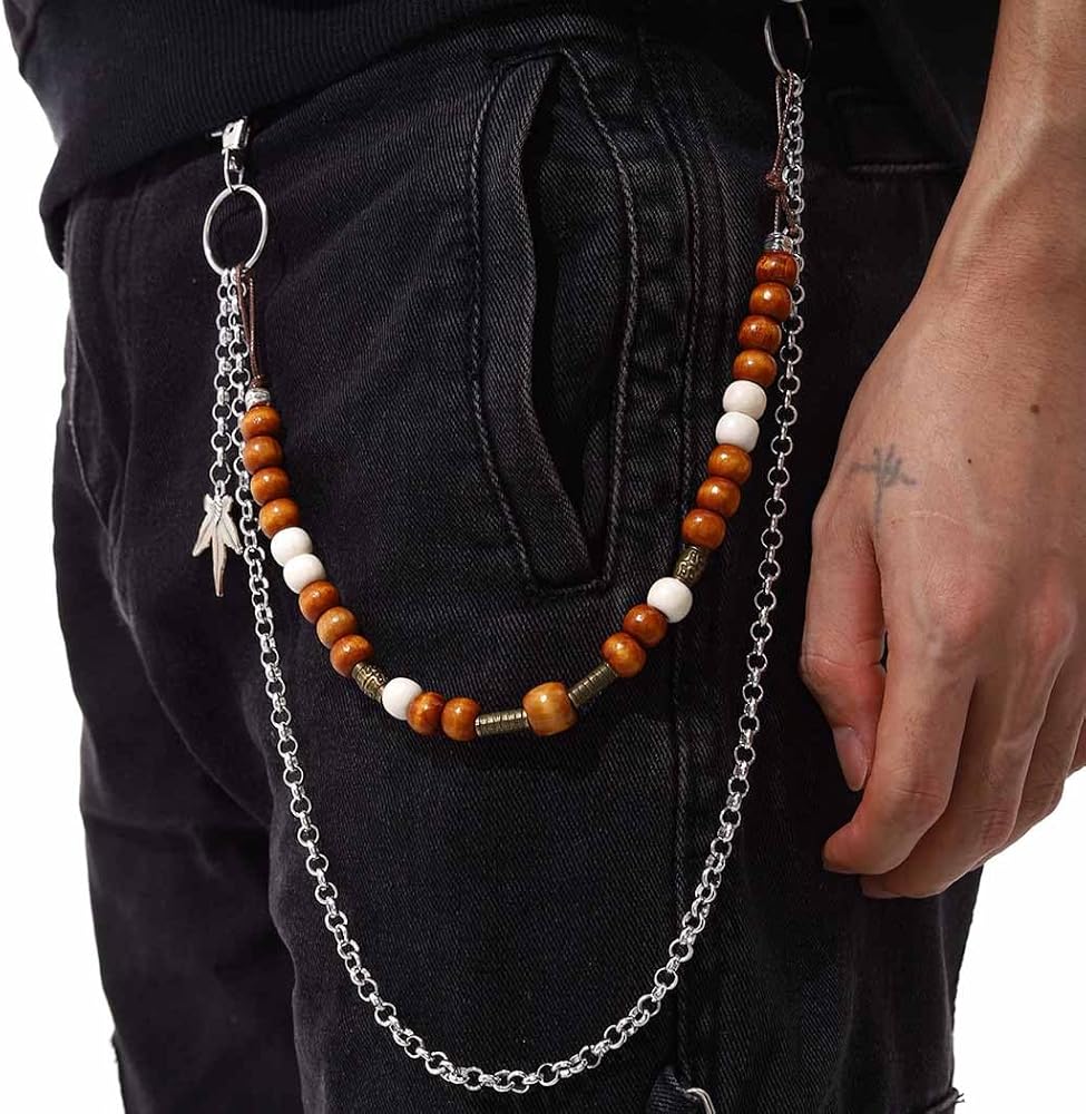 Punk Pant Chains for Men Gothic Wallet Chains Hip Hop Pocket Jeans Chain Wood Beaded Trousers Chain Layered Rock Chains