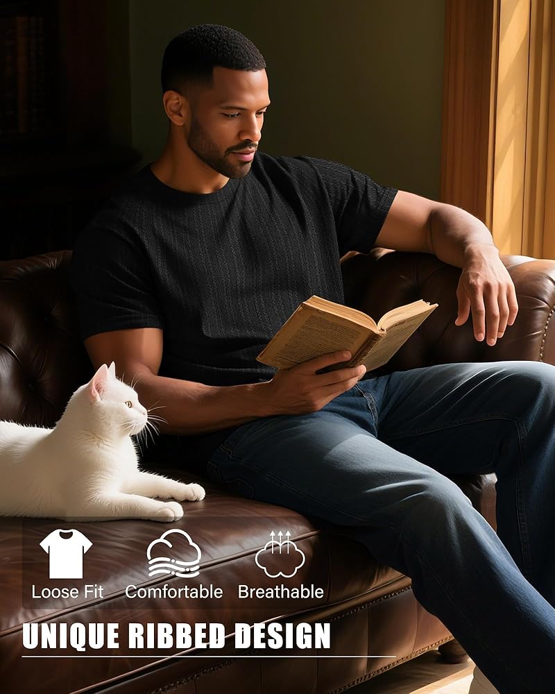 Flattering Look: the men's causal tshirts feature short sleeve, crewneck, solid and knit fabric detail; A classic crew neck provides a nonrestrictive fit; Short sleeve allows for a wider range of motion; Novel and stretchy knit fabric will never go out of style
