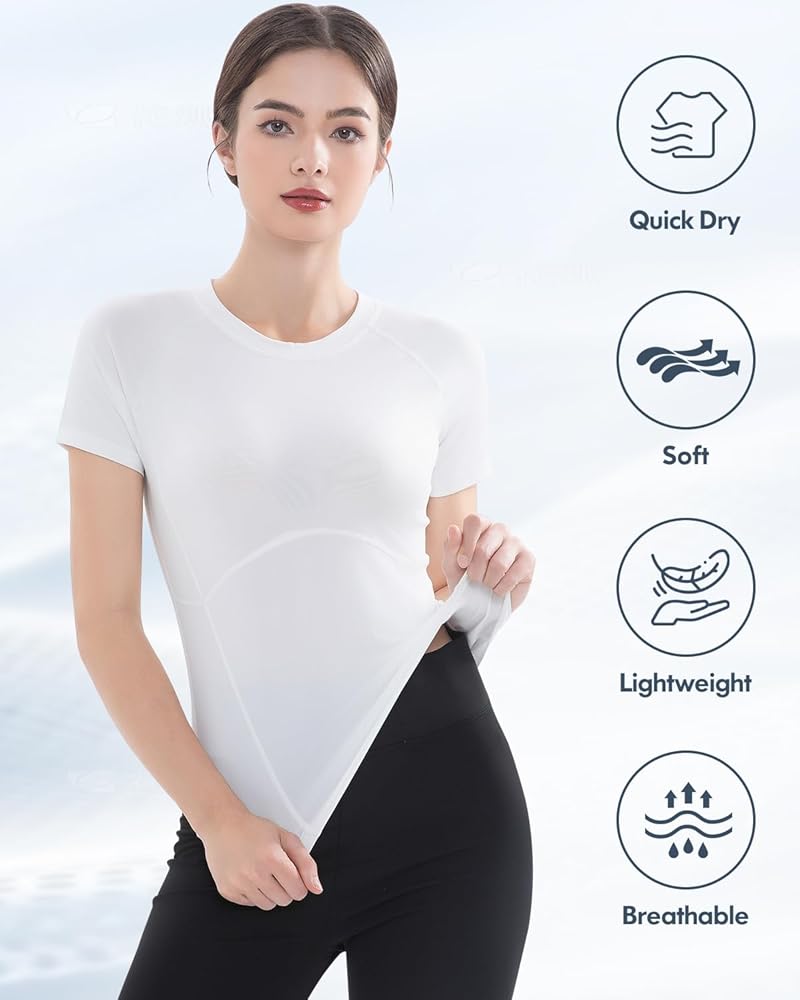 🌿 Breathable & Moisture-Wicking Fabric: Stay cool and dry with our yoga shirts for women crafted from ultra-soft, moisture-wicking fabric. The breathable material accelerates sweat evaporation, keeping you comfortable during intense training or hot yoga flows. Soft against the skin and odor-resistant, it's the perfect choice for gym shirts women prioritize both style and function