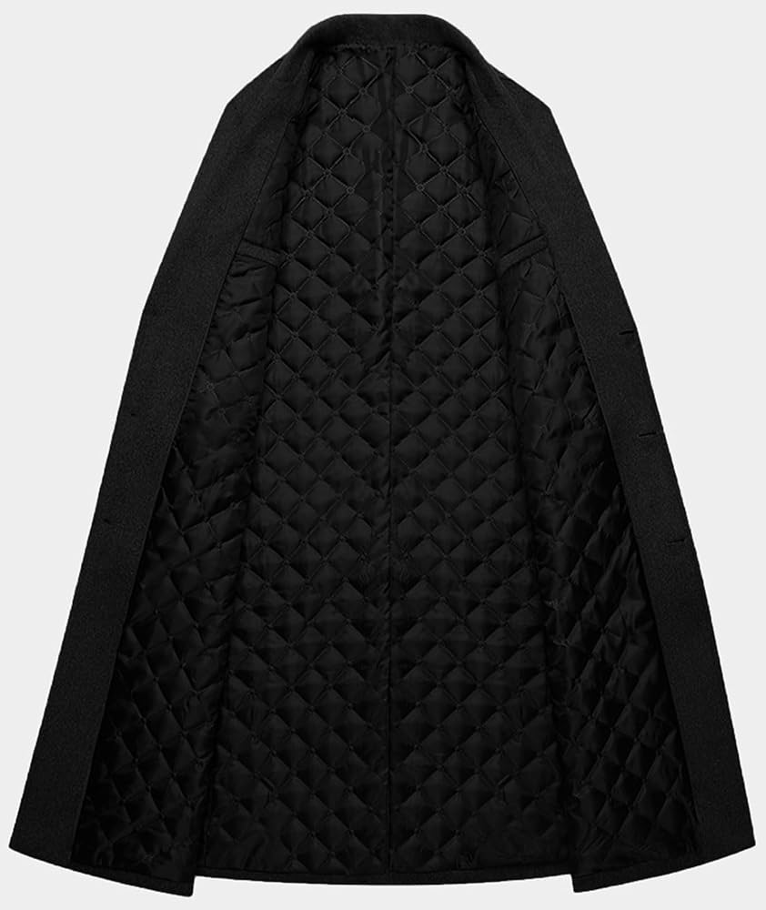 ★☆Features&Design☆★Men's Winter Trench Coat,Wool Blend Pea Coat,Windproof Long Overcoat,Notched Lapel,Single Breasted,Button Up,Warm Quilted Lined,Slim Fit Design,Side Pockets,Inner Pocket,Classic Black and Grey Color,Elegant Business Jacket
