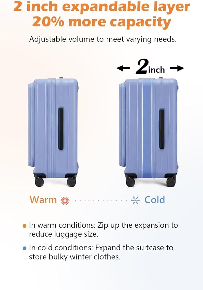 EXPANDABLE CAPACITY: Adapt to your travel needs with our expandable feature, offering up to 20% additional space. Perfect for accommodating souvenirs or extending your trip, this flexibility ensures you're prepared for any journey.