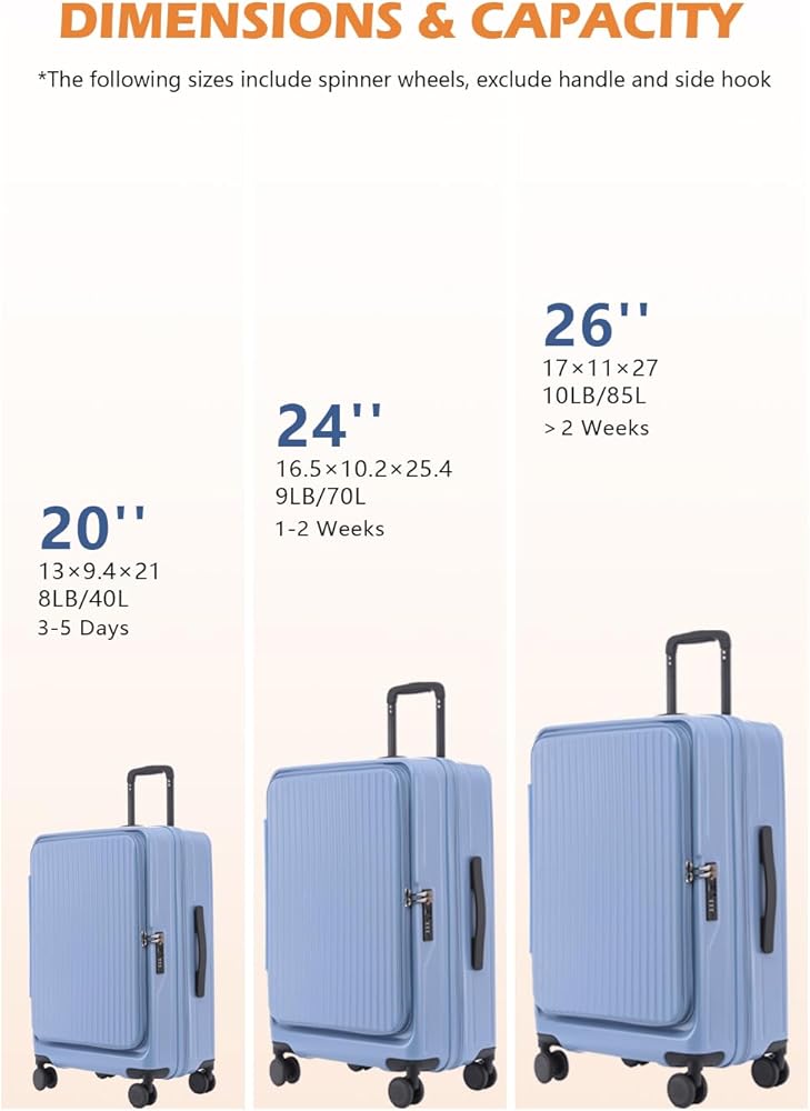 INNOVATIVE FRONT OPENING: Experience effortless packing with our unique top-opening design. Access your belongings with ease, save space, and enjoy a more organized travel experience. Say goodbye to the inconvenience of traditional side-opening luggage.