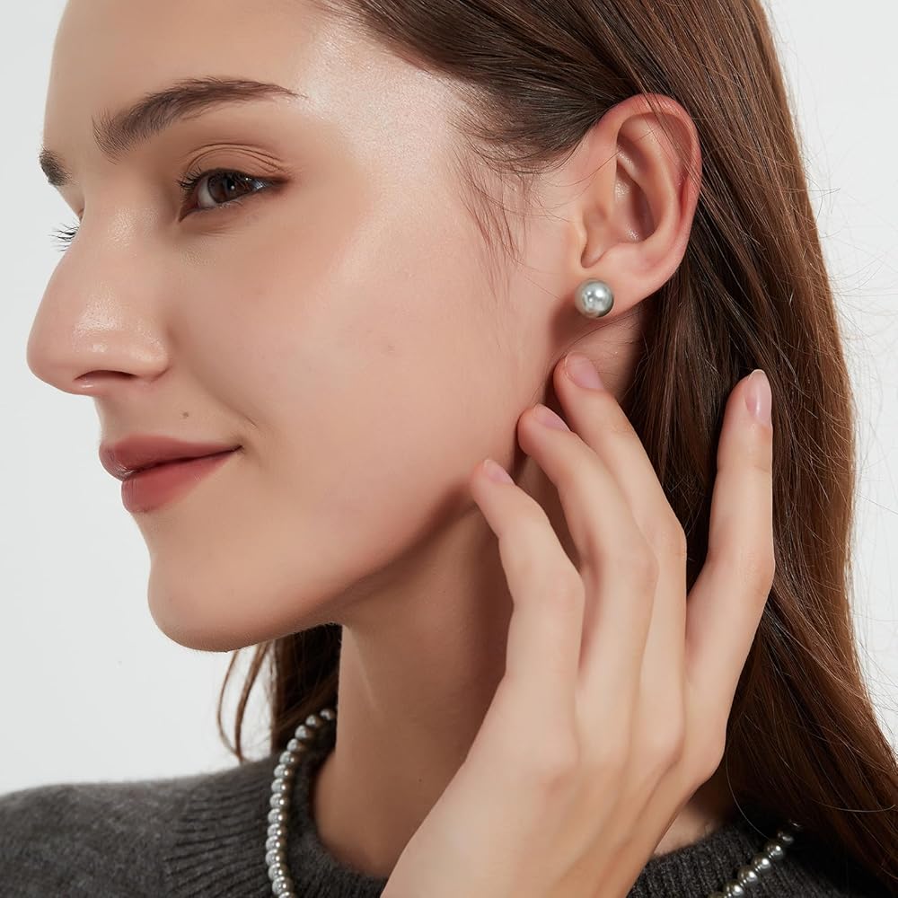 These pearl jewelry set is made of good quality imitated pearls. The studs posts are made of s925 sterling silver to be hypoallergenic. The light gray silver color is a well imitation of oceanic Tahitian pearls with lustre, making the jewelry pieces luxury and chic.