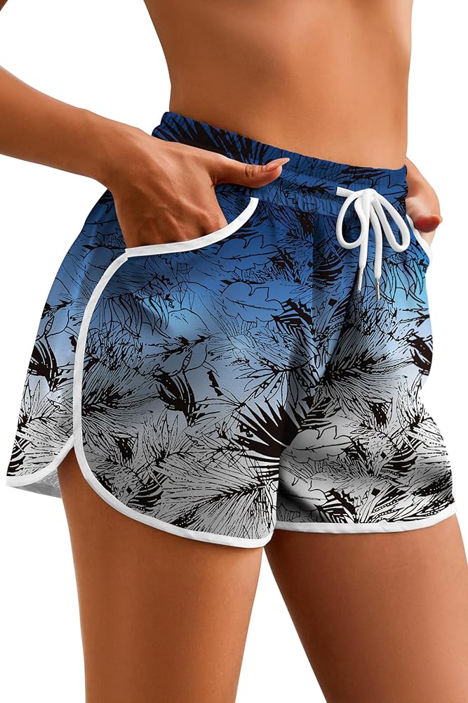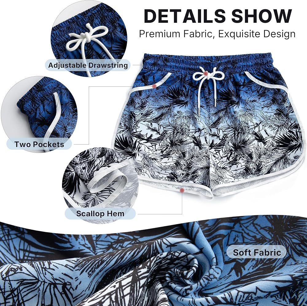 Fashion Print:Women's Hawaiian style tropical print sports swim trunks color is vibrant and many summer vibes popular patterns to choose,such as floral,coconuts,palm and pineapple,perfect for hot summer,seaside,beach party