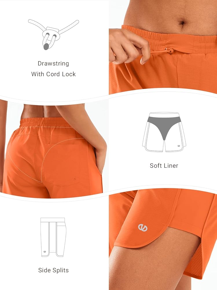 ALLZERO Women's Swim Board Shorts 5" with Pockets Quick Dry Beach Shorts with Liner Ruched Waistband