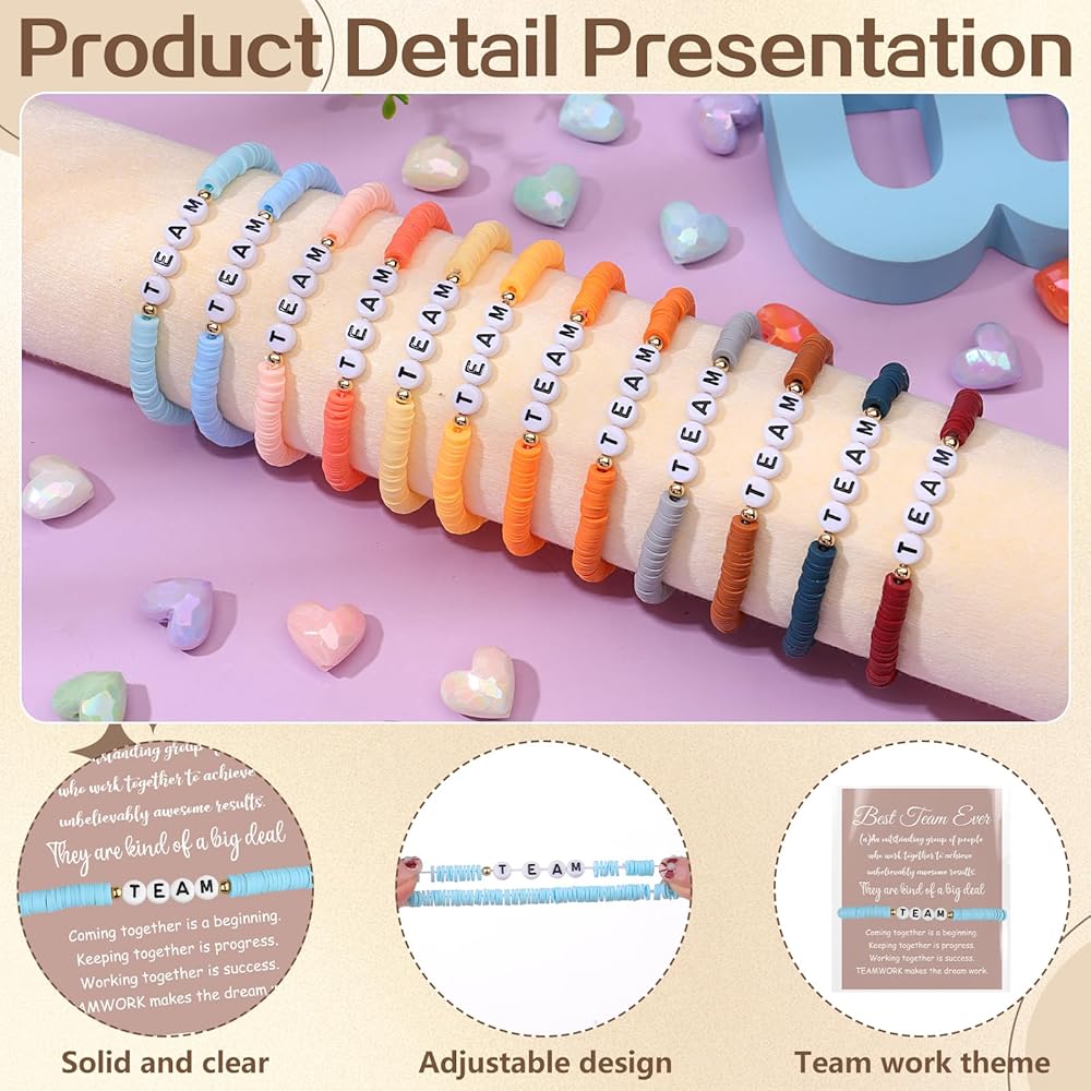 Each set contains 24 handcrafted clay bead bracelets that complement professional attire.