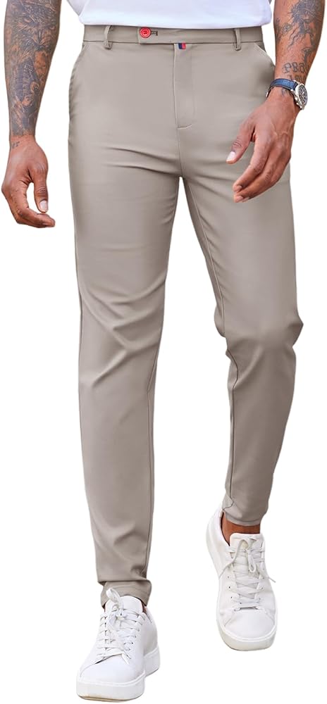 Slim Fit Pants: Pants for men slim fit can highlight your figure. Not too tight, not too loose. We use sturdy buttons, tough stitching and high quality zipper to make sure you can wear it for long time without worrying it broken.