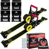 Safe and Sturdy: Heavy duty metal ratchets and wheel chocks with twice breaking strength of comparable products, break strength is up to 4400lbs, working load limit 1,466lb, suitable for relatively heavy vehicles and equipment.