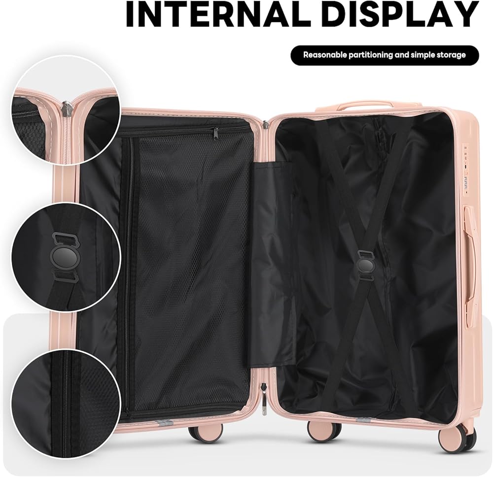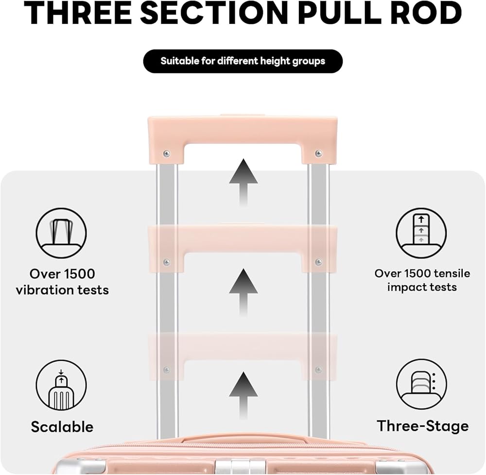 20 Inch Carry On Luggage With Cup Holder & USB Port, Airline Approved TSA-locked Luggage, Lightweight PC Material Travel Suitcase With 360° Spinner Wheel (20in-Pink, 20in)