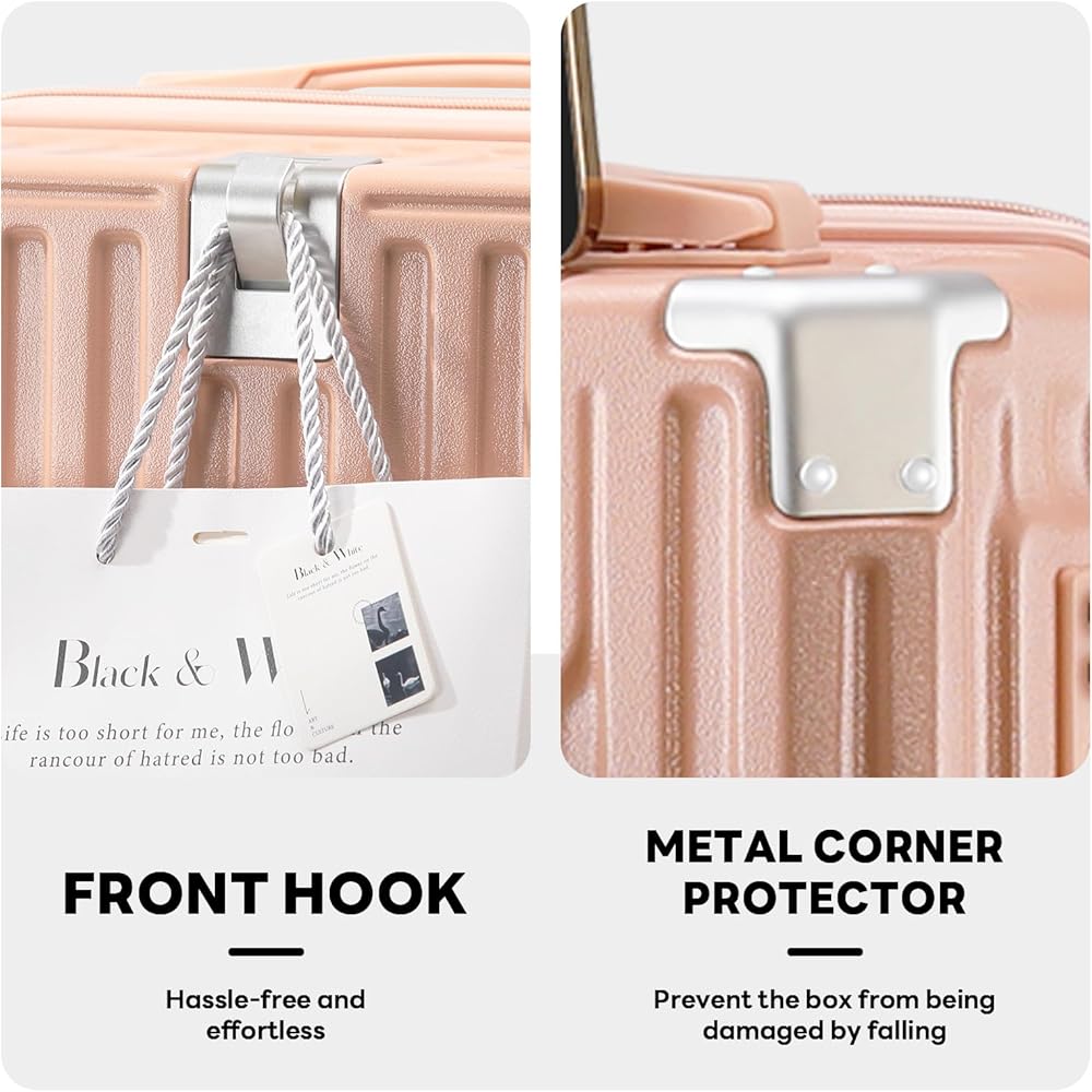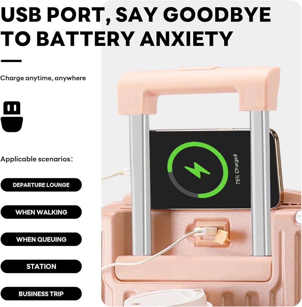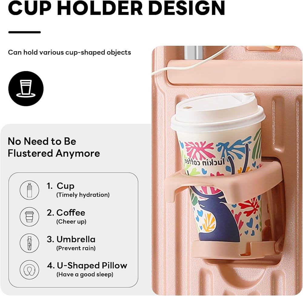 【Multifunctional Holder Design AND Built-in USB Port】Especially designed water cup holder and hook on the luggage box, all is to provide a comfortable and convenient travel experience.The suitcase with a built-in USB port(Power bank not included), provide quick connection to your portable electronic device for a quick charge.Not worried about the phone is out of power any more.