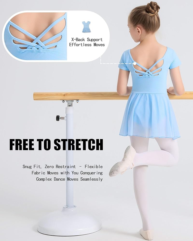Ultra-Soft & Durable Cotton-Spandex Blend:Made with 90% breathable cotton and 10% stretchy spandex, this ballet dress hugs the body comfortably without restricting movement.The fabric stays vibrant and shape-perfect even after repeated washes—no fading, shrinking, or pilling!