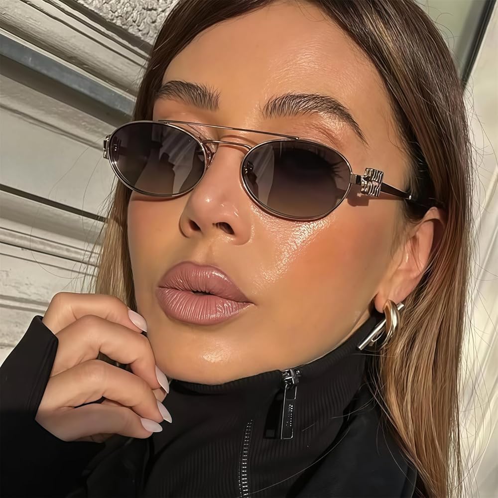 **Retro-Chic Oval Lenses | '90s Mini-Style Revival** Adorable oval-shaped petite lenses framed in shimmering metal, channeling iconic 90s fashion, exudes elegance. . Perfect for lovers of nostalgic, doll-like aesthetics with a timelessly cute edge