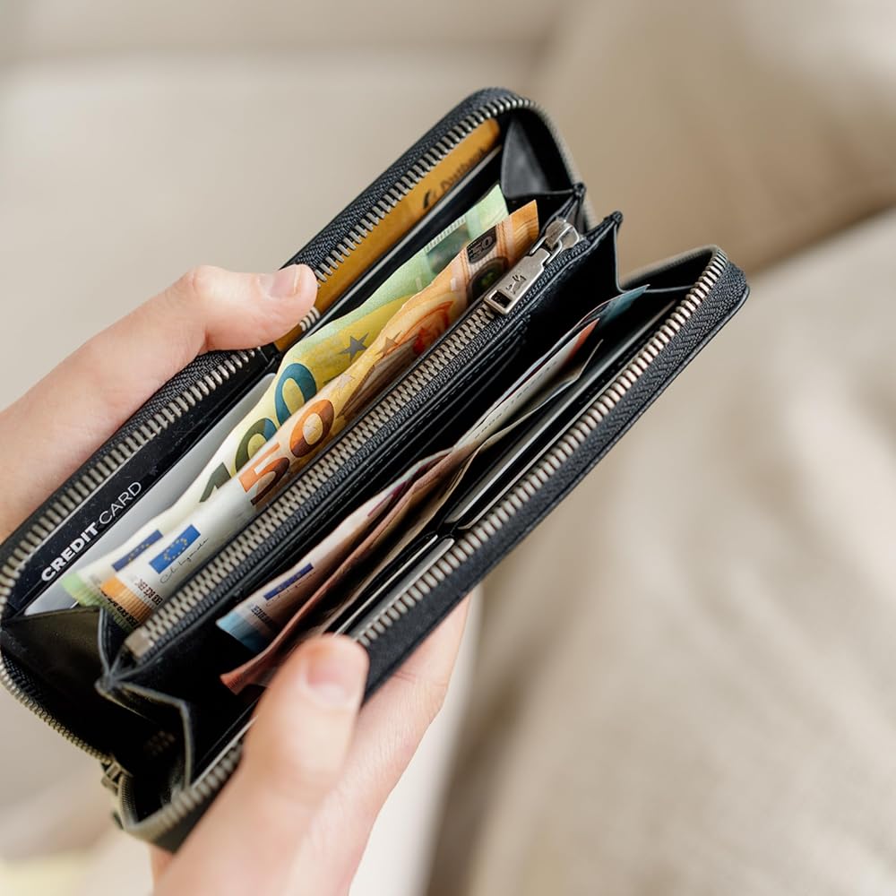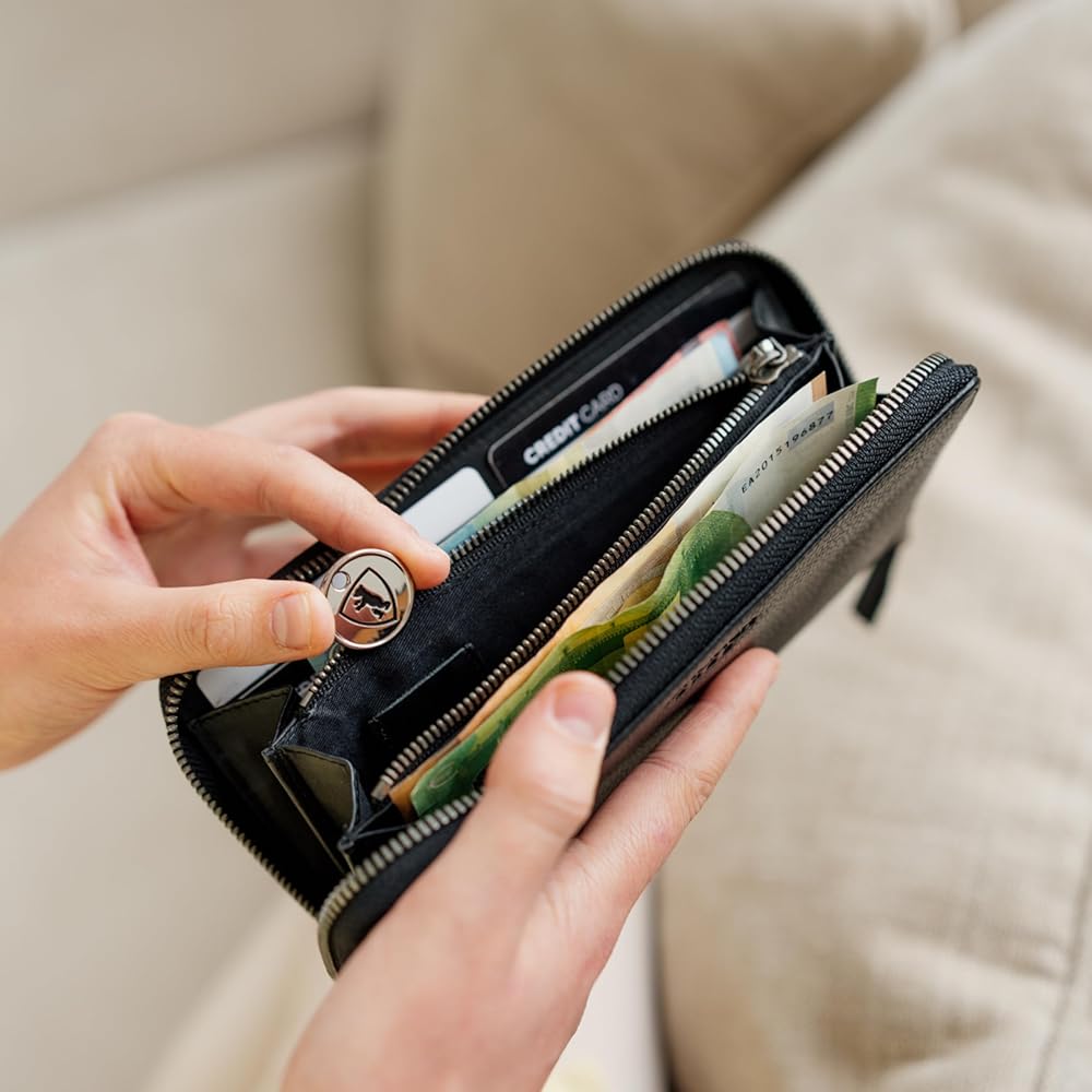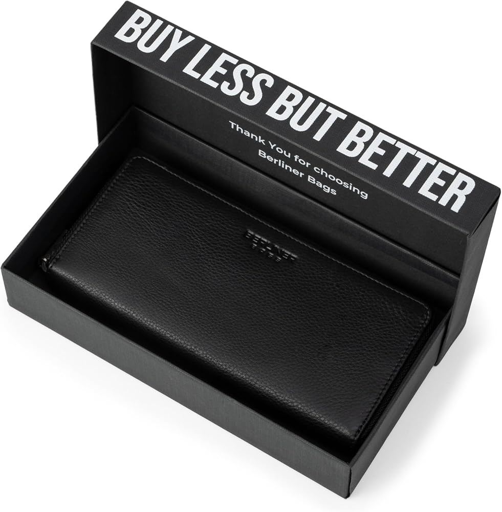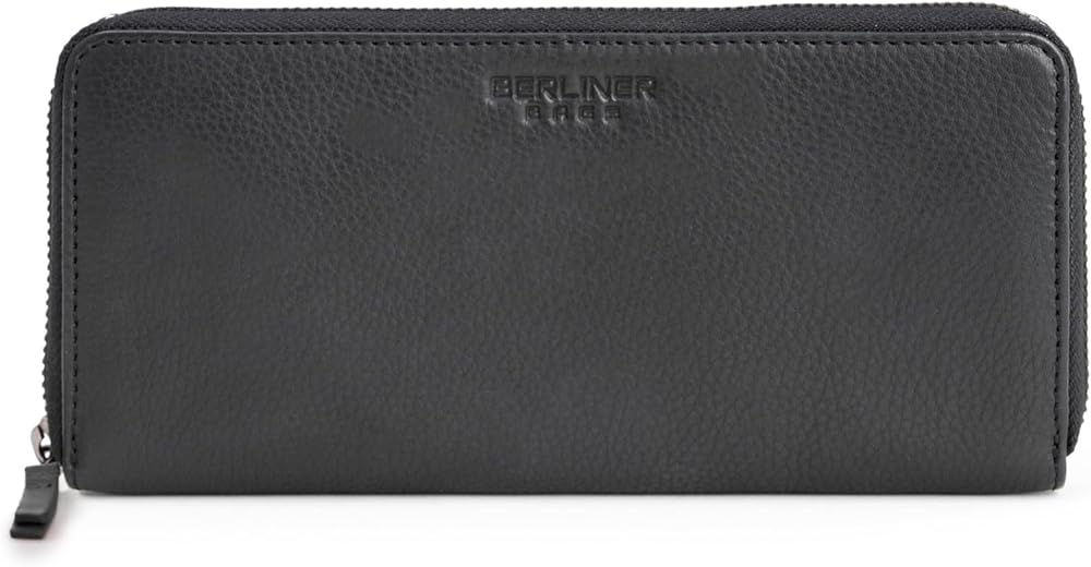 BERLINER BAGS Premium Genuine Leather Wallet Palma, RFID Blocking Credit Card Holder, Slim Womens Wallet, Zip Around Wallet for 14 Cards, Bills, Coins, ID Window - Black
