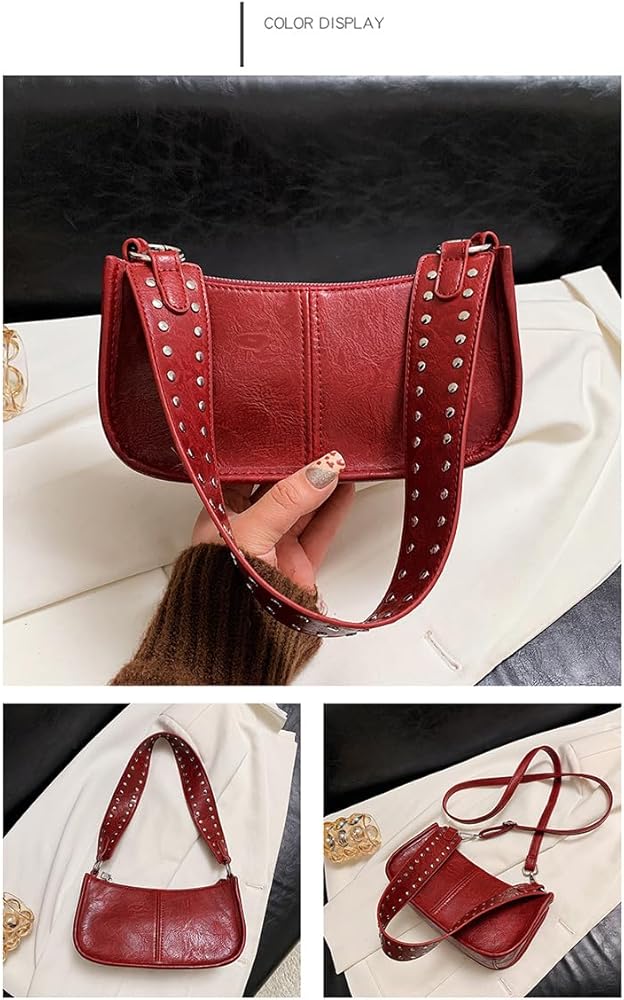 Stylish and Trendy Design: This red purse is designed with studded details, offering a trendy yet timeless look. The burgundy bag color adds a bold, elegant touch, making it perfect for women who love chic, Y2K bag. Whether you're dressing up for a night out or attending a casual outing, this red shoulder purse will effortlessly elevate your outfit, adding a fashionable edge to your look.