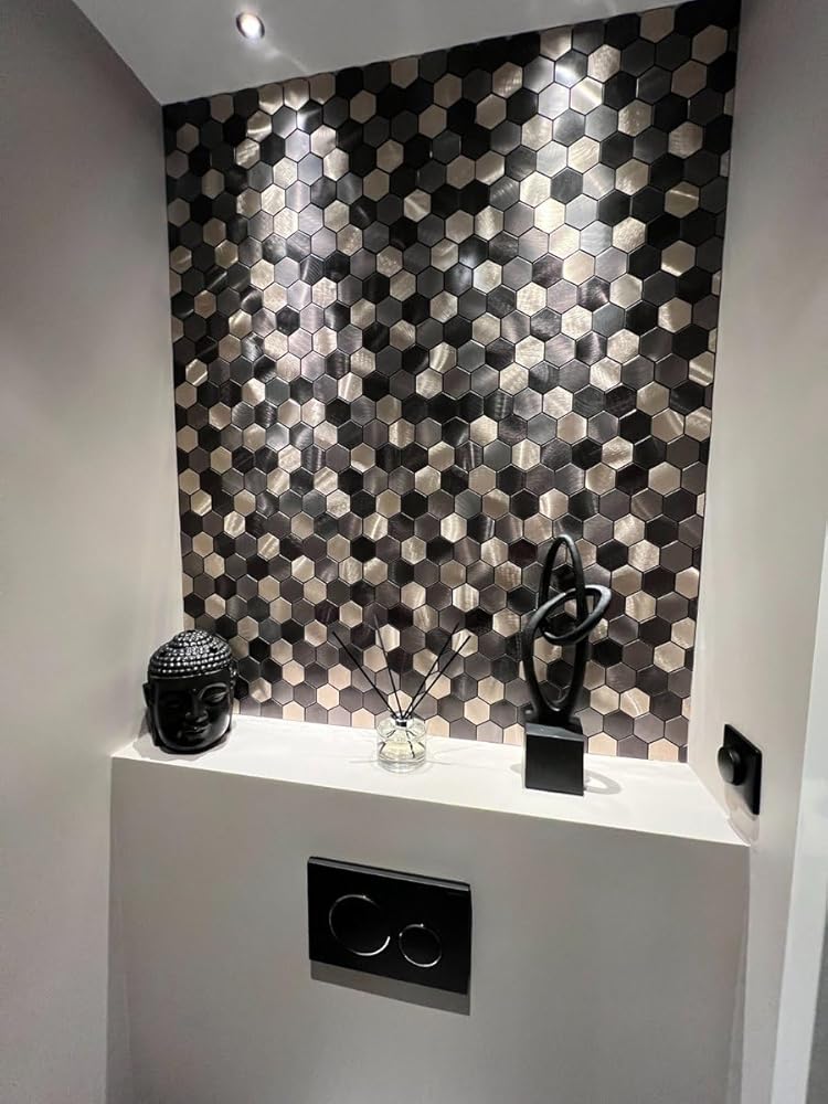 Application: The peel and stick metal tile is used for wall decoration, such as the kitchen backsplash, kitchen island walls, bedroom walls, laundry rooms metal wall tile etc