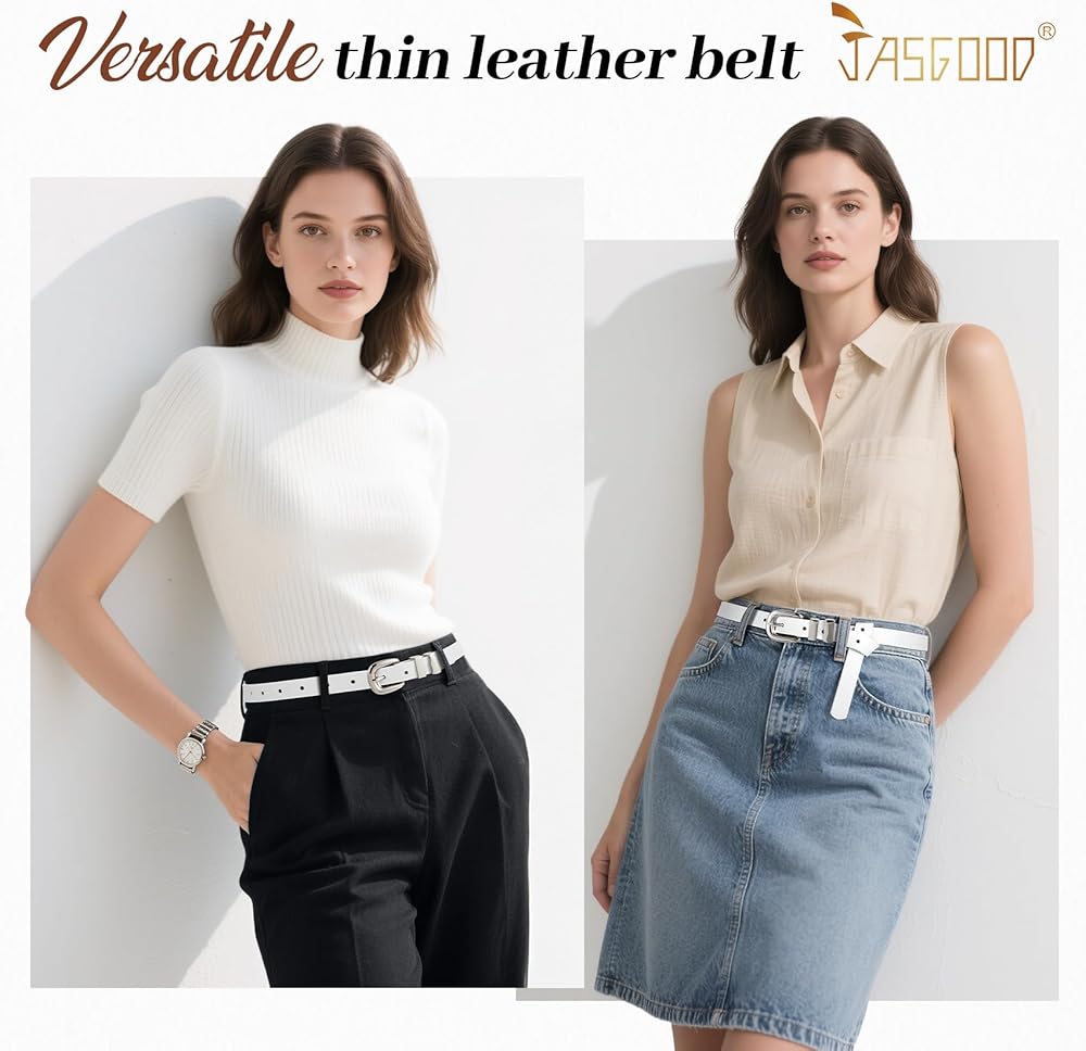 VERSATILE: This slim belt has a minimalist design with a versatile appeal, and the neutral color palette easily matches your closet in a variety of color palettes for a variety of occasions. Perfect for work and meetings, the ladies skinny leather belt gives you a confident and professional look. Also great for casual days, weekend dates or dinner parties, a simple thin belt can add just the right amount of dimension to your look, making you look stylish and elegant.