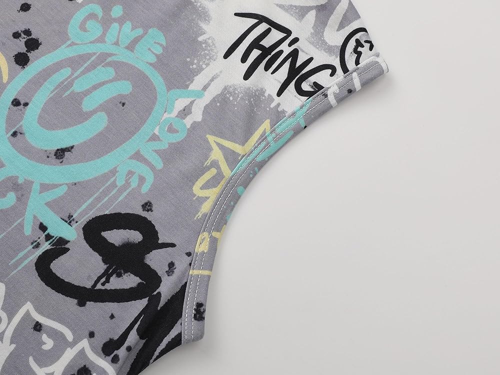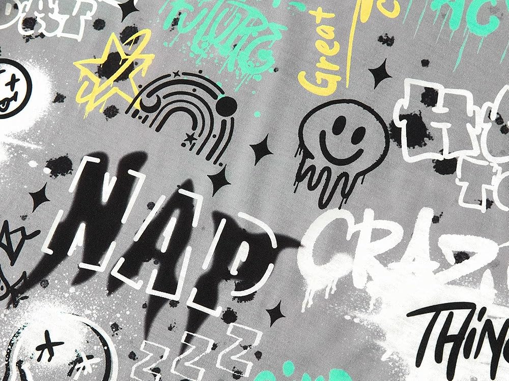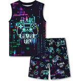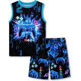 Feature: This boys' loungewear features the text of " GAME ON " and a dinosaur graphic at front, with all-over game controller print on the pajama shorts, making this an extra fun and beloved casual clothes set for boys at bed time. Crewneck & raglan Tank sleeves on top. Pull-on elasticized waistband on the PJ shorts for on-and-off convenience. This nighty with black and blue contrast colors will make the boys stand out on Pajama Day or slumber party.