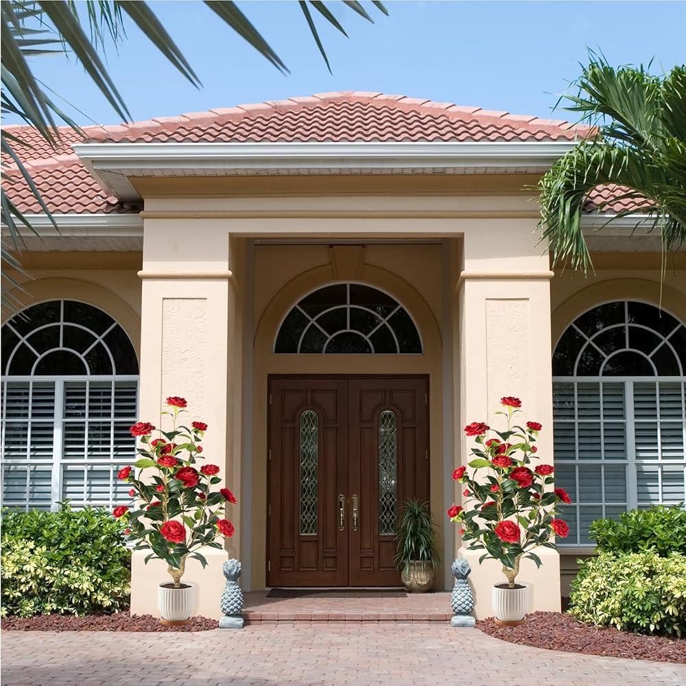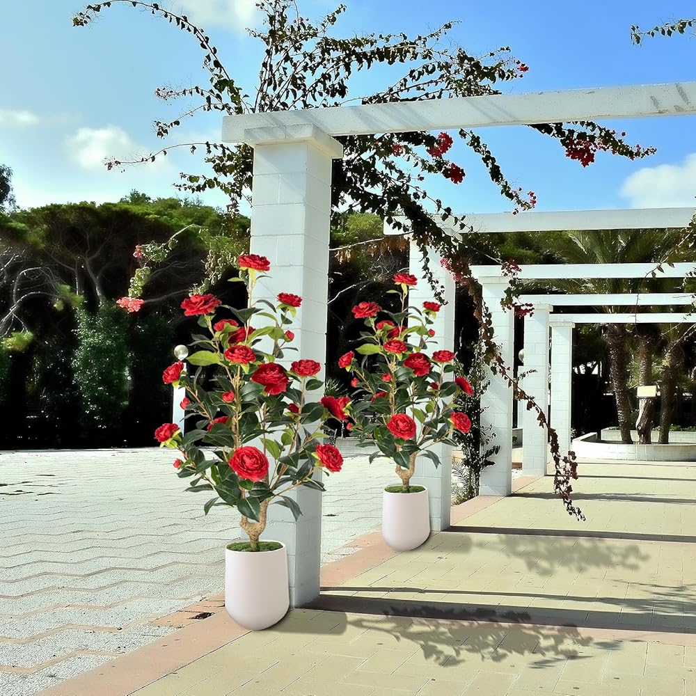 Realistic Design - These artificial camellia trees feature lifelike leaves and vibrant blooms, crafted with high-quality materials to mimic the beauty of real plants. Perfect for adding a touch of nature to any space.