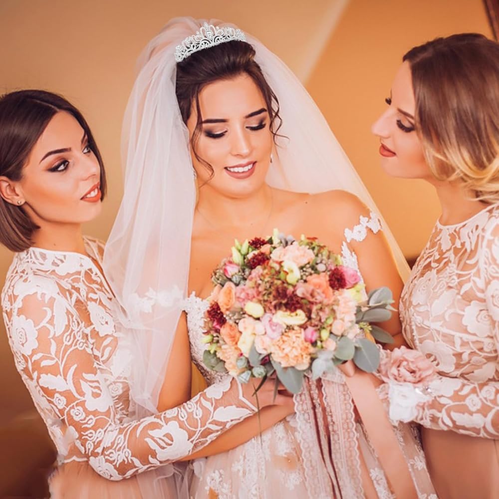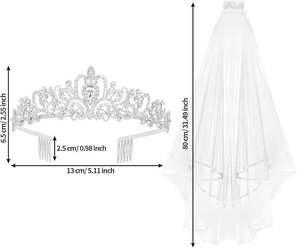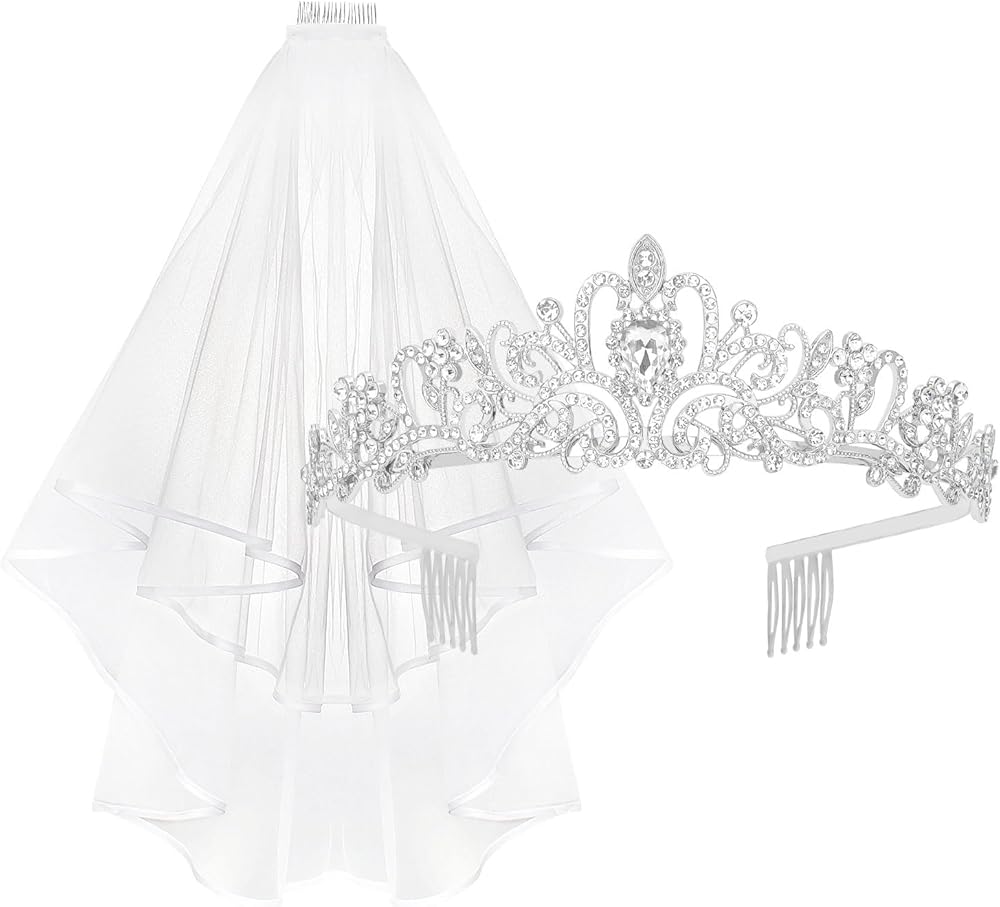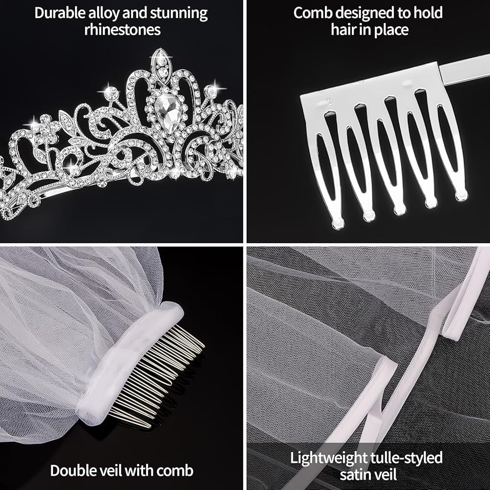 YARIEW Silver Crown and Bride Veil Set, Rhinestone Wedding Tiara, Bridal Shower and Bachelorette Party Decorations, Prom Bridal Shower and Birthday Gift for Women and Girls