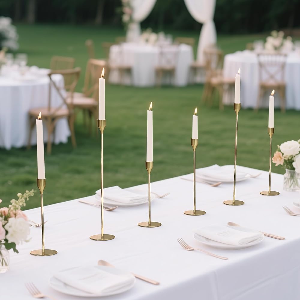 Versatile Compatibility: Fits all standard taper candles (3/4 inch diameter) and LED taper candles. Bright, brushed metal finish ensures long-lasting luster and elegance.
