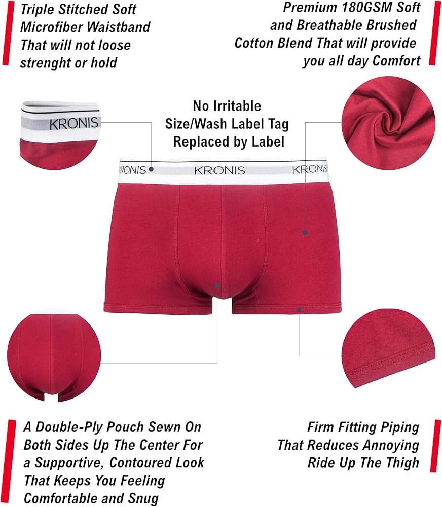 KRONIS Mens Underwear - Low Rise Cotton Trunks - Designed In Italy In Premium 180GSM Cotton