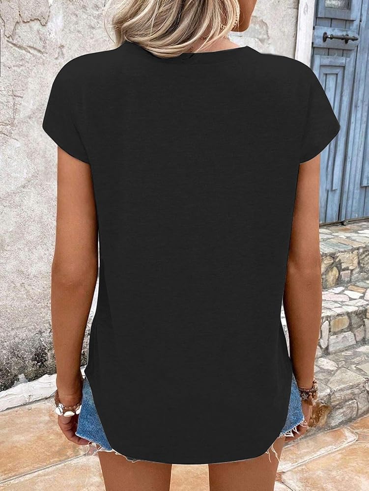 Design:Featured with short sleeve, v neckline, regular length, solid color never out of style. The simple and causal design makes you look stylish. The womens tops combines sportiness, style and versatility! The relaxed fit offers the freedom and ease of movement whether you're at home or outdoors.