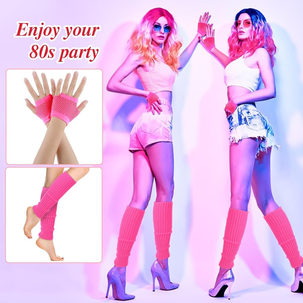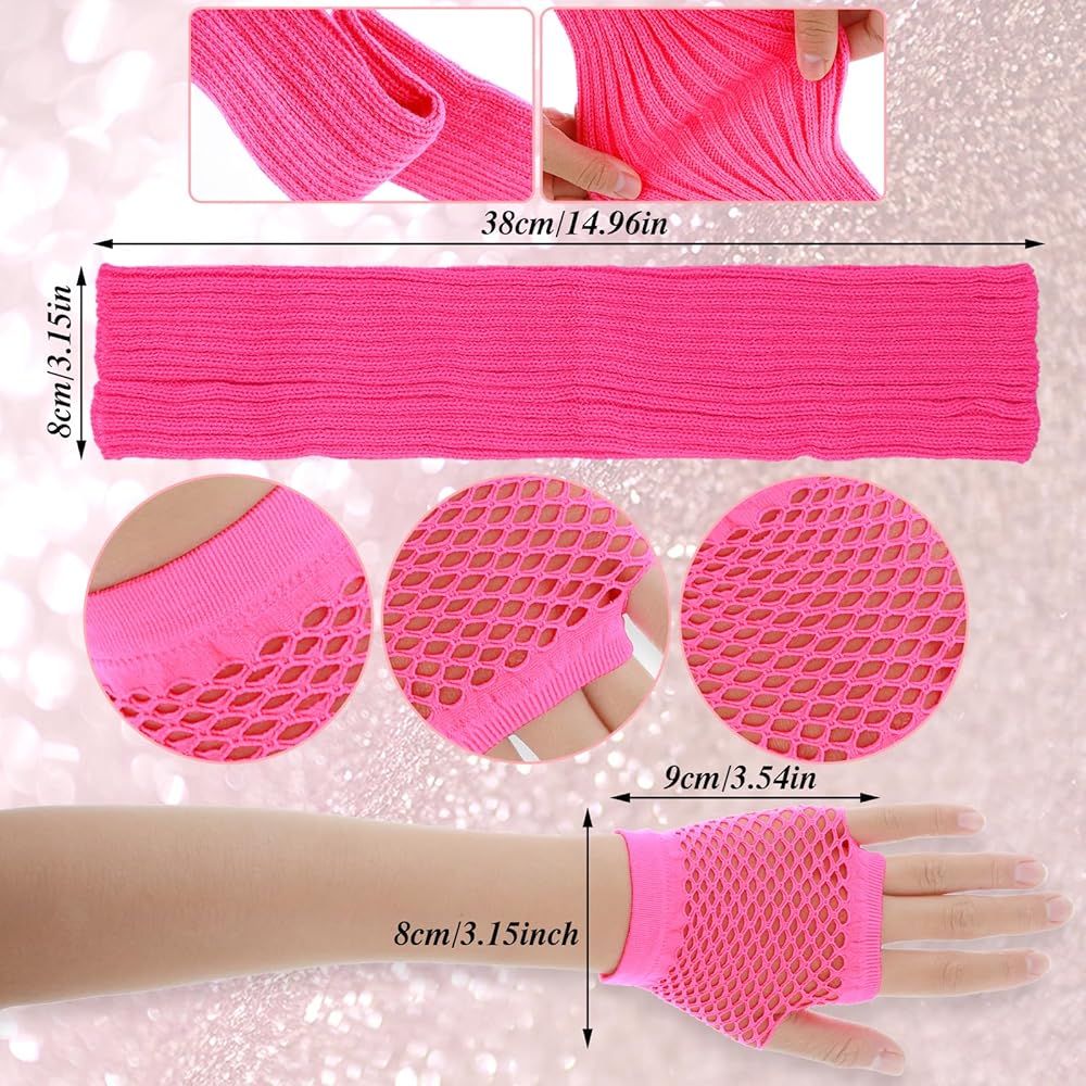 【Package Included】You will receive 1 pair of fishnet gloves and 1 pair of neon leg warmers with fishnet openings, thumb holes and pinky holes, 2 pairs can meet daily replacement needs, wearing them can make you look fashionable and stand out from the crowd, it is an ideal 80s accessories for women