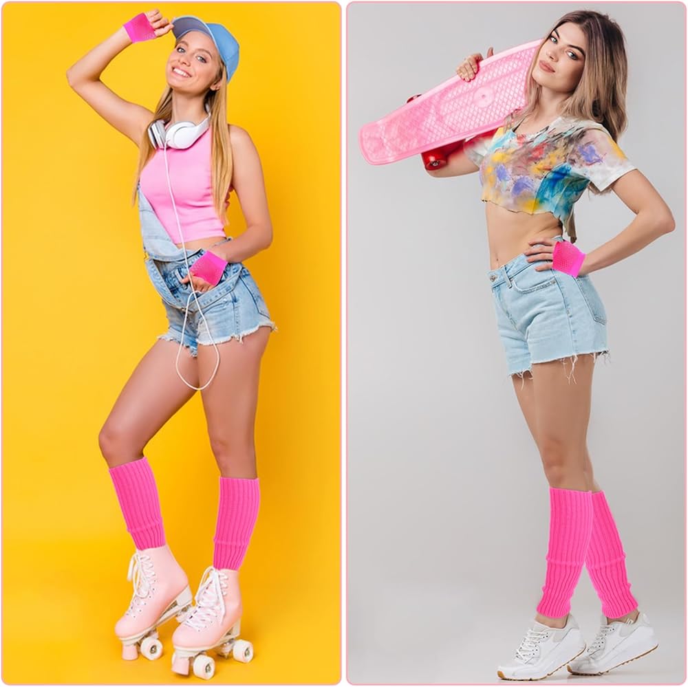 【Easy to Match】The combination of neon leg warmers and fishnet gloves fingerless is easy to match, and can be matched with retro rock style, street style clothing or daily wear, such as denim jackets, yoga pants, leggings, jumpsuits, skirts, Halloween costumes, short boots, over-the-knee boots, and is also suitable for team identification in team sports events