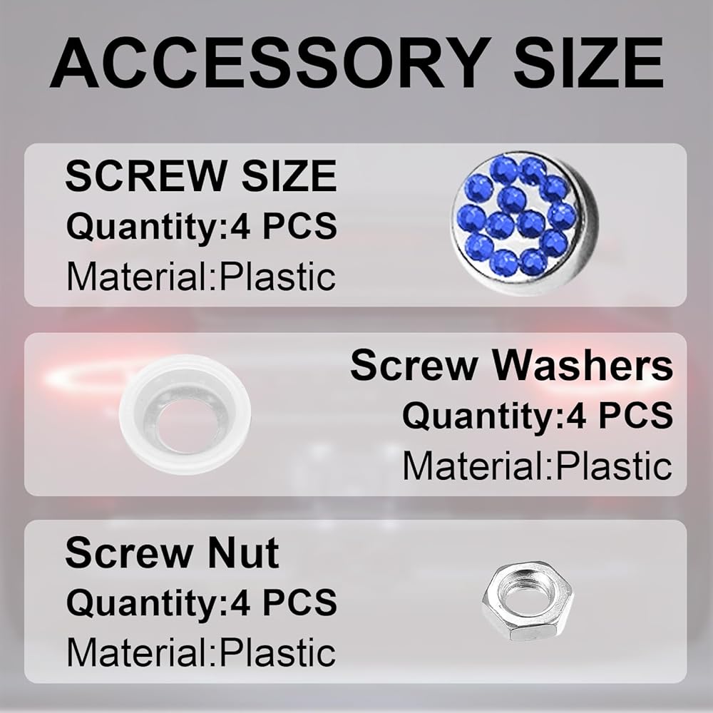 - 【PACKAGE INCLUDES】Includes shiny accessories needed for both front and rear license plate protectors