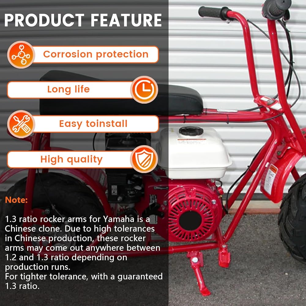 Fitment:1.3 ratio rocker arms for Yamaha is a Chinese clone This is for ALL NON-HEMI type heads.30% more lift on the intake and 30% more lift on the exhaust!