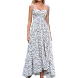 Features: Tropical dresses for women with sweetheart neckline, tie up shoulder straps, which are made this boho wedding dress show your curve. Open back, smocked back, sleeveless, and A-line irregular flowy hem, gorgeous and fashion. This bridesmaid dresses can create a wonderful hourglass figure, will give you a charming slimming and looming look