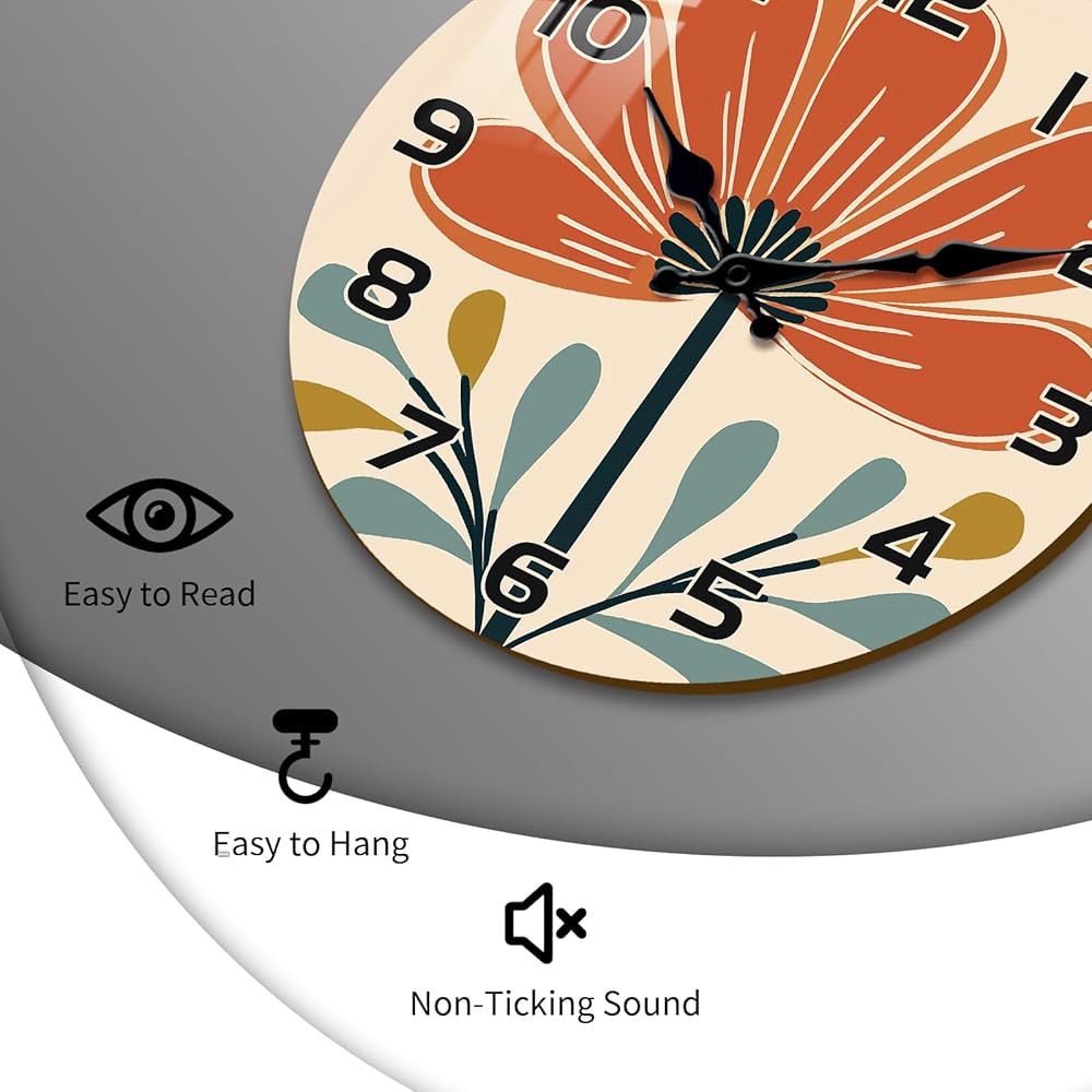 Silent - Flowers wall clock silent non-ticking sound,no noise. This silent wall clock will not disturb you even when you are reading,working,thinking,chatting or sleeping.