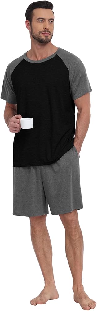 【Material】: This men's pajama set is made of soft, lightweight, breathable, skin-friendly, and stretchy fabric, making it perfect for summer loungewear and everyday wear.
