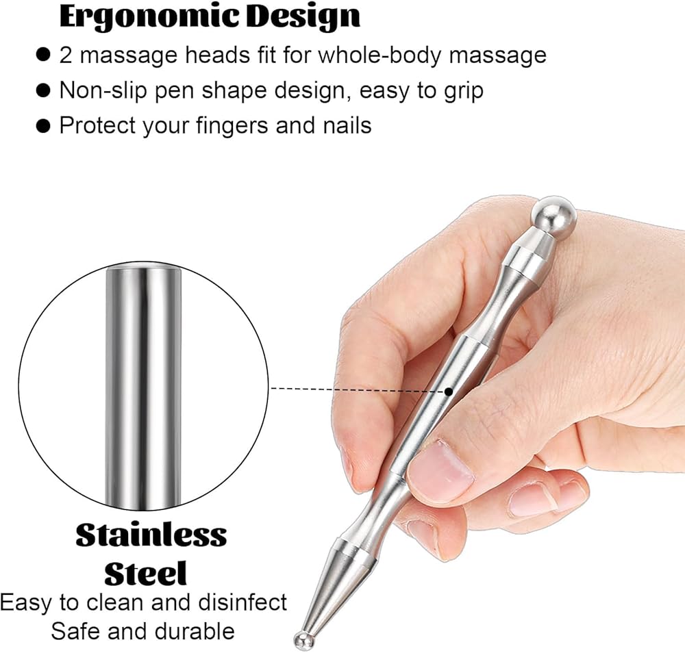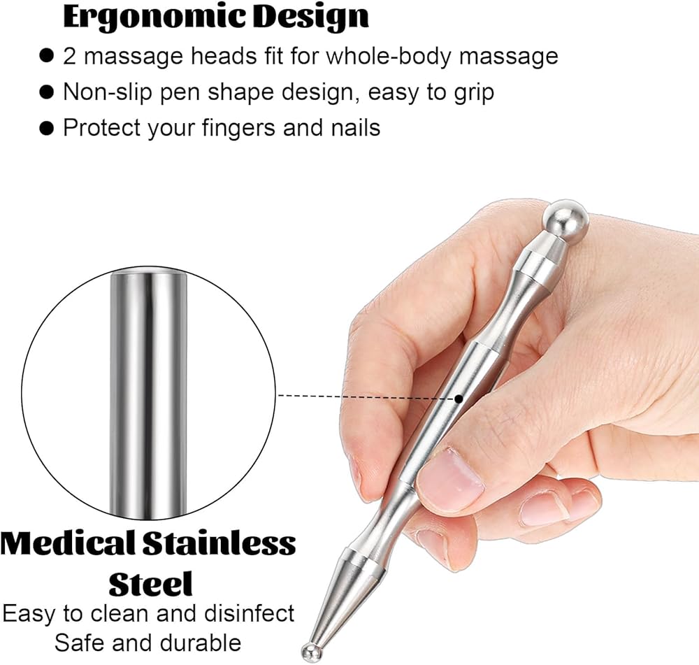 Acupuncture Pen, Stainless Steel Tmj Relief Products Jaw Trigger Point Massager Reflexology Acupressure Pen Fascia Stick Tools for Full Body Meridian Pain Relief