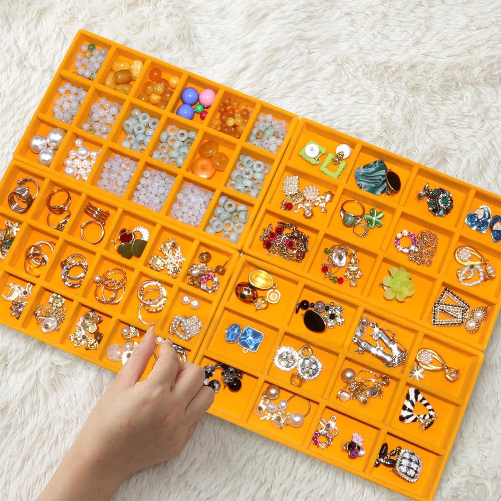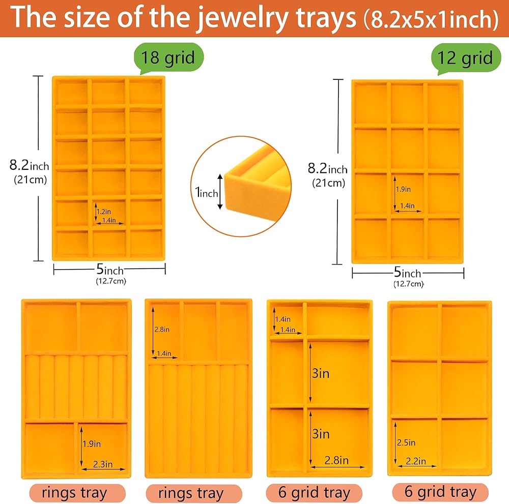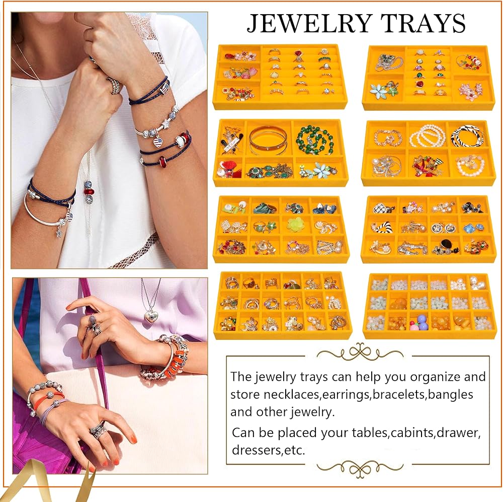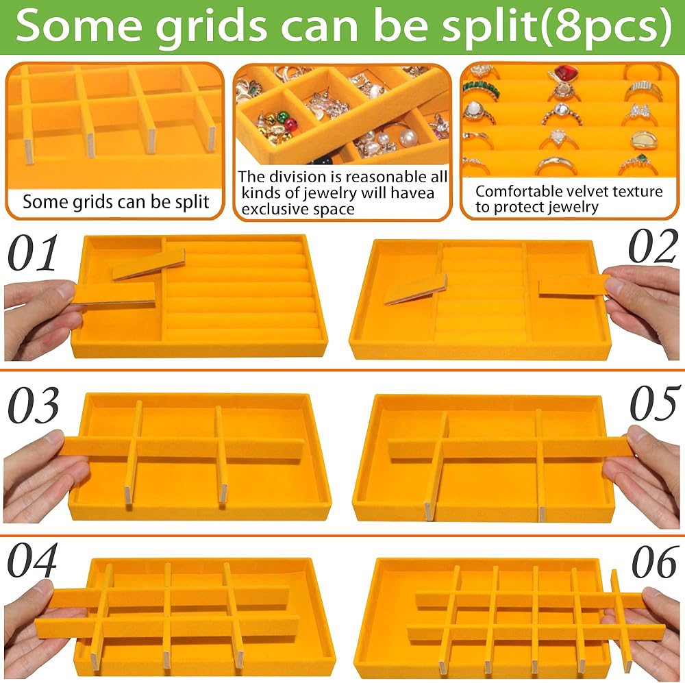Adjustable Dividers & Stackable Design: Provided with removable grids, easy to remove to fit for your different size jewelry. Our jewelry trays can be stacked. Keep your jewelry organized and easily accessible