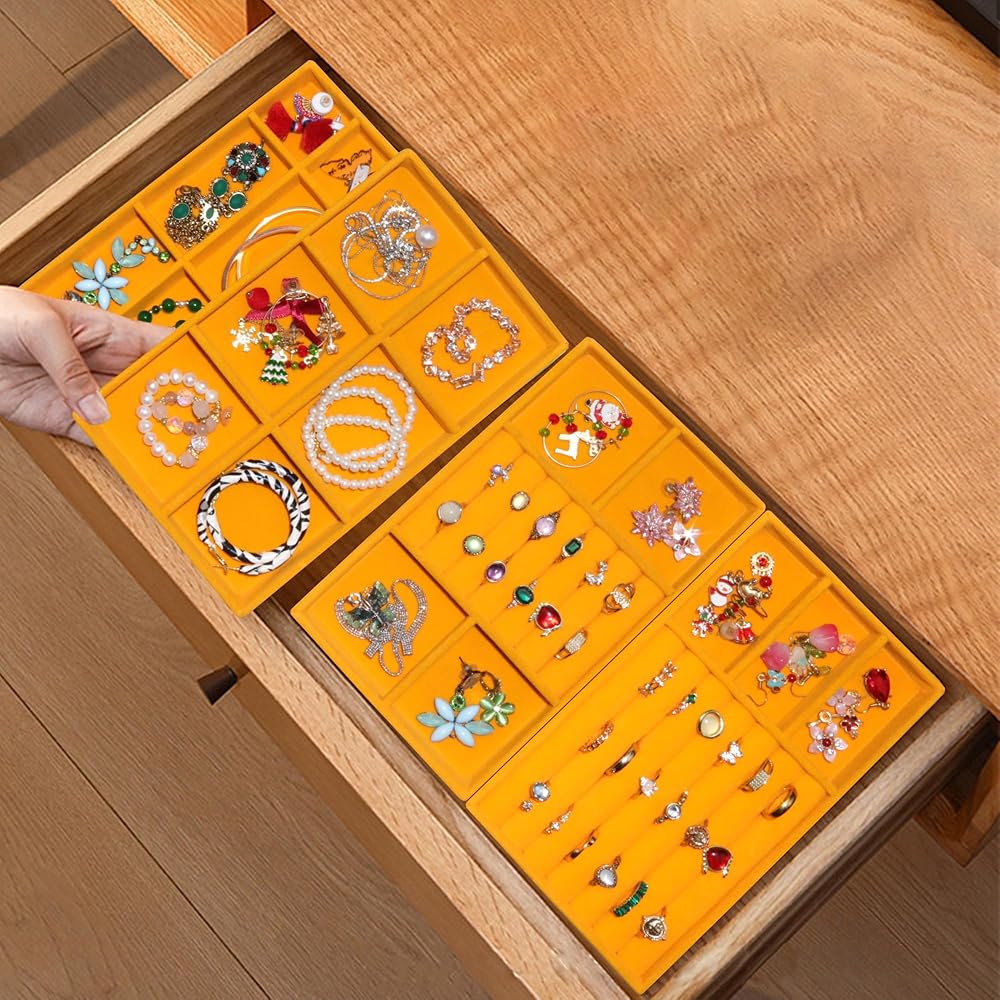 Superior Craftsmanship: Made of soft yet anti-friction velvet fabric, our jewelry trays can protect rings, earrings and other valuables from scratches while collecting