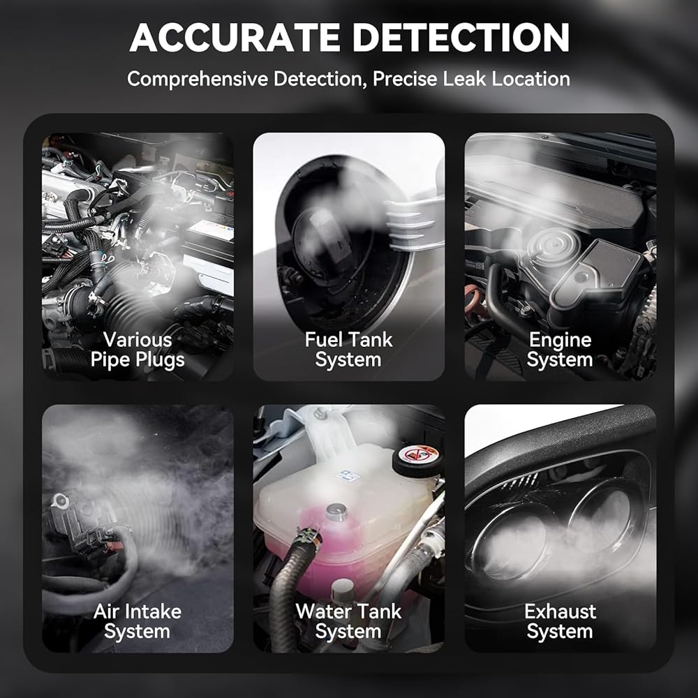 🔥 【Instant Detection】Delivers powerful 19 PSI output pressure with 6L/min high-speed airflow for lightning-fast leak detection response. Generates thick smoke within 10 seconds of startup, with high-sensitivity detection that reveals even micro-leaks for unmatched accuracy and efficiency.