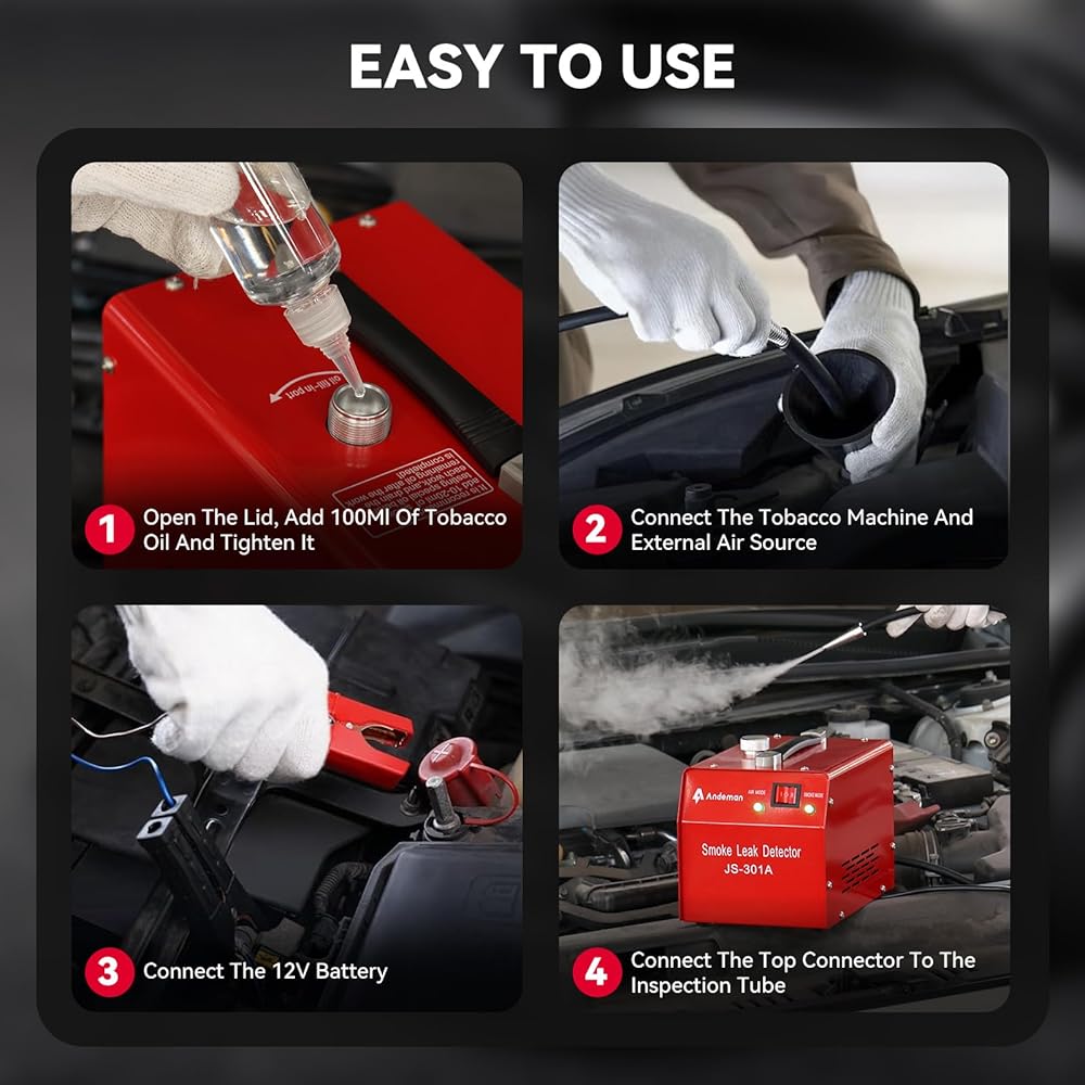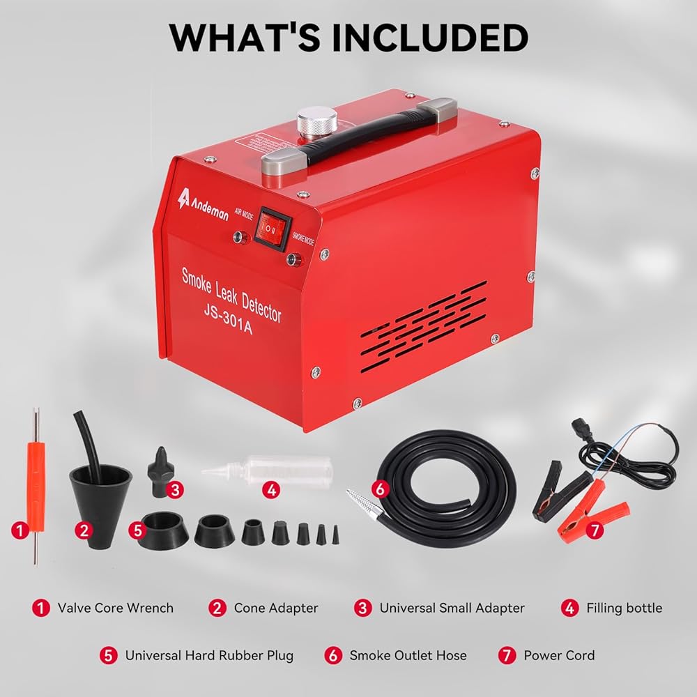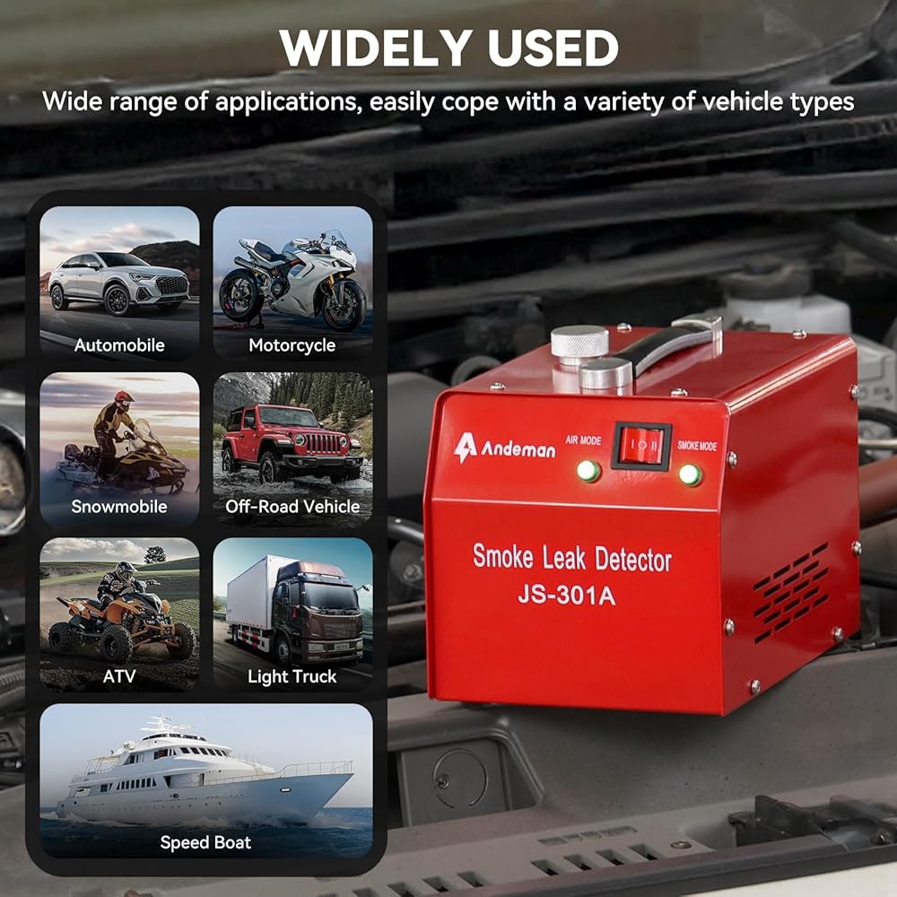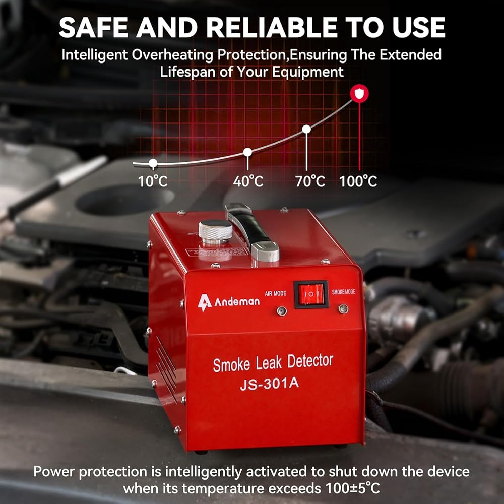 🔥 【Full-Spectrum Leak Detection】The Andeman Smoke Machine Tracer generates targeted smoke at leak points, professional leak detector for all vehicle systems - including intake, exhaust, cooling, turbo, crankcase, seals and all tubing connections (fuel, AC and brake lines). Ensure road safety with regular vehicle maintenance – prevent breakdowns before they happen!