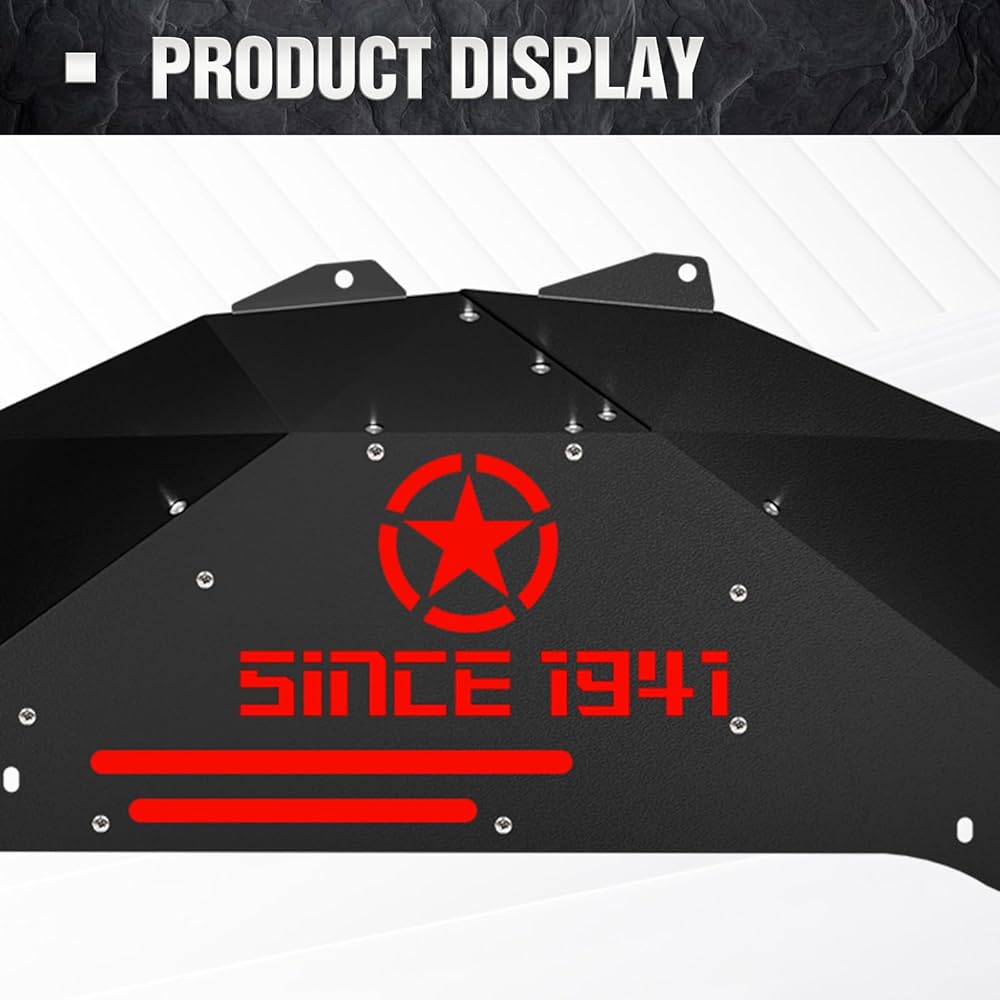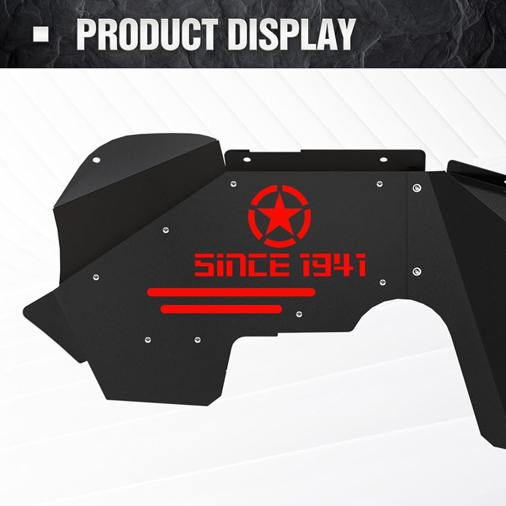 for Wrangler JK Front and Rear Inner Fender Liners Compatible with 2007-2018 Jeep Wrangler JK & JKU 2/4 Doors, Since 1941 Logo Steel Back Mud Guards Wheel Well Cover Fender Flare Liners (4 PCS)