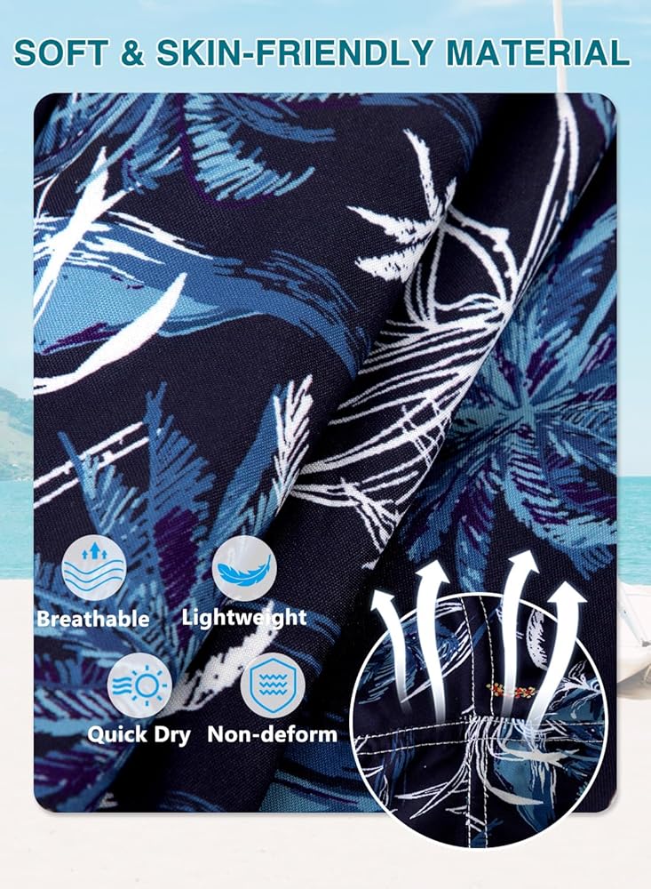 【Quick Dry Stretch Fabric】Mens swim shorts are made of 95% polyester and 5% spandex, which is comfortable and lightweight. Keep you dry and flexible workout and durable. These beach shorts snug fitting while helping improve mobility. It's perfect beach essentials.
