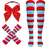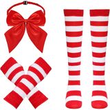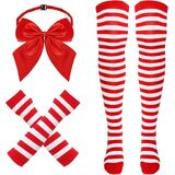 You will receive 1 red and white striped socks,1 red and white striped gloves and a red bow.These red and white striped socks are made of polyester,spandex,and cotton fabrics,which are warm,soft and breathable,allowing you to match your pants and skirts perfectly when doing some outdoor activities.And each accessory is very elastic and adjustable,don't worry you will be bound,suitable for most people,will give you a wonderful experience and make you more attractive in the crowd!
