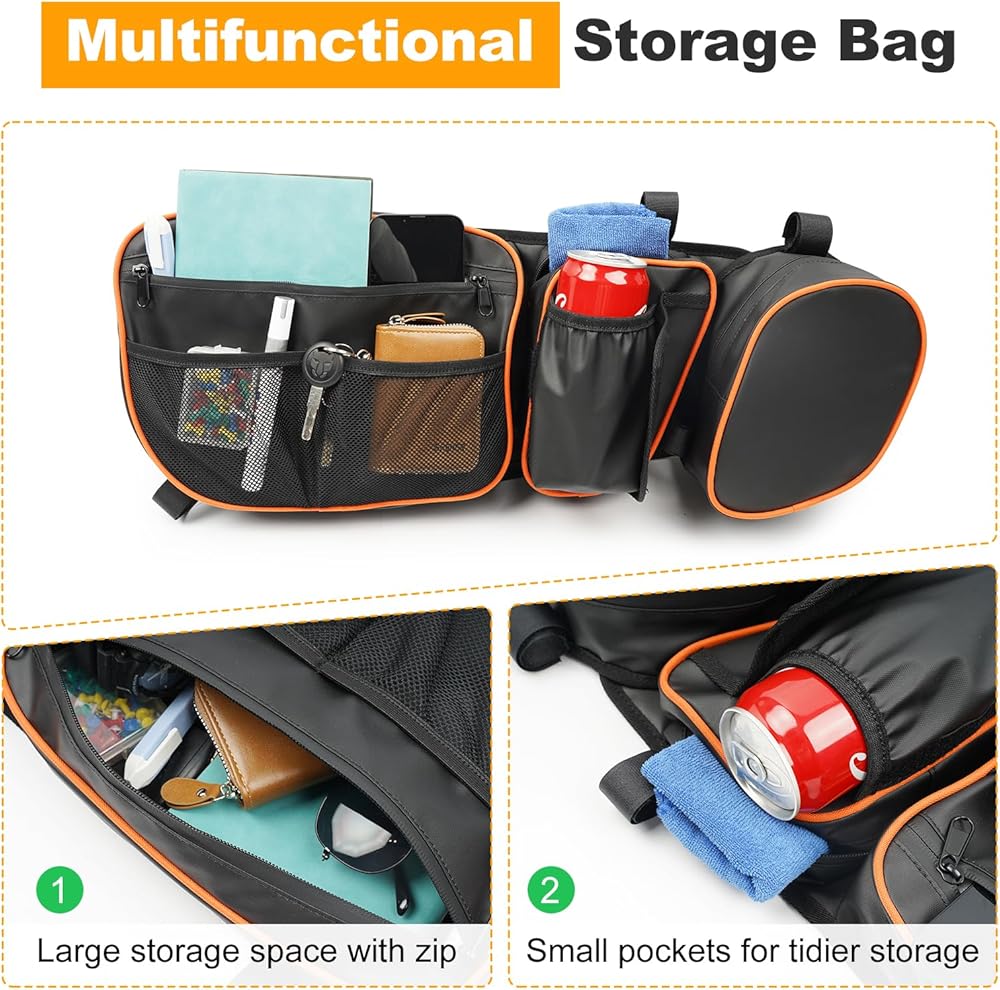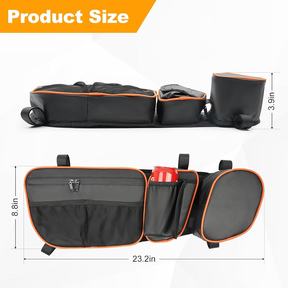 Large-capacity Space: The X3 side door bag has three storage pockets and an external elastic mesh pocket, and there is also a cup holder for placing water cups and beverages. All items are within easy reach, and you can open the zipper to easily access and put in items.
