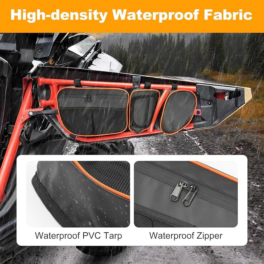 PVC Waterproof Material: The X3 door bag is made of high-quality PVC waterproof fabric and waterproof zippers, which can prevent rainwater and sediment from entering. The outer layer of the fabric is not only waterproof but also easy to clean, and you can quickly wipe off the stains on the bag.