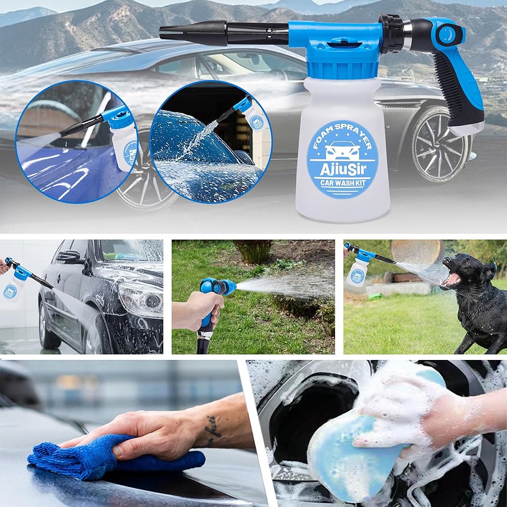 【Better Foam Gun & Sprayer】AJIUSIR foam gun car wash sprayer come with 2 nozzle, You can freely switch the gun head to meet car wash and garden watering needs,with 2.5 to 6 bars pressure suitable for car cleaning and garden watering use