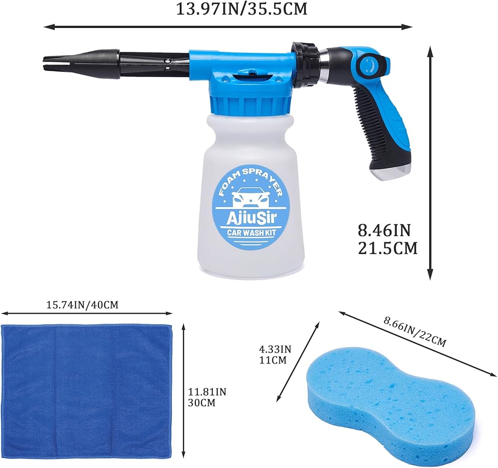 【Better Car Washing Kit】This is a good car cleaning tool kit for anyone car lover, in addition to the foam gun combination, it also gave away car washing sponge & absorbent towel,making it more convenient for you to wash the car