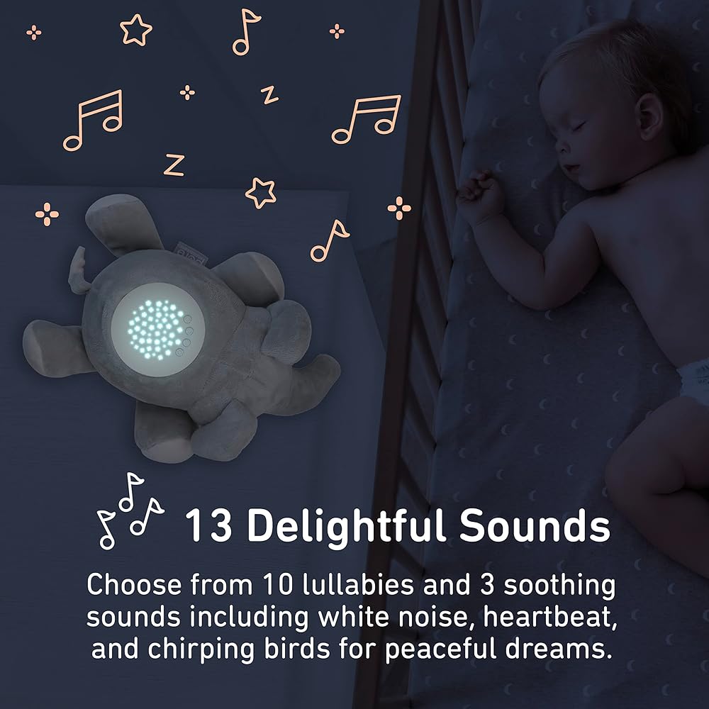 Peaceful Sleep Training for Baby: Help your little one fall asleep faster by snuggling up to this adorable animal plush soother programmed with 10 lullabies and 3 soothing sounds including white noise, heartbeat, and chirping birds - simply adjust sound for your baby's comfort with 5 volume settings