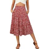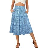 Feature: Womens A Line Ruffle Skirts, 3 Layers of Tiered Skirt, Women Beach Fashion Skirts for Women, The Flowy Skirt Has Two Pockets on Both Side, High Waisted Boho Skirt with Mid Calf Midi Length Womens Skirts