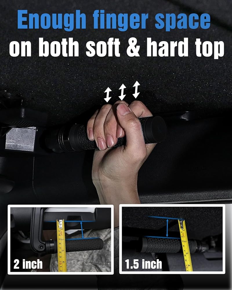 【OUT OF THE WAY OF THE AIRBAG】The bronco grab handles are at the right height for both soft & hard tops, providing enough hand space,will not hit the head, and will not affect the airbag deployment.