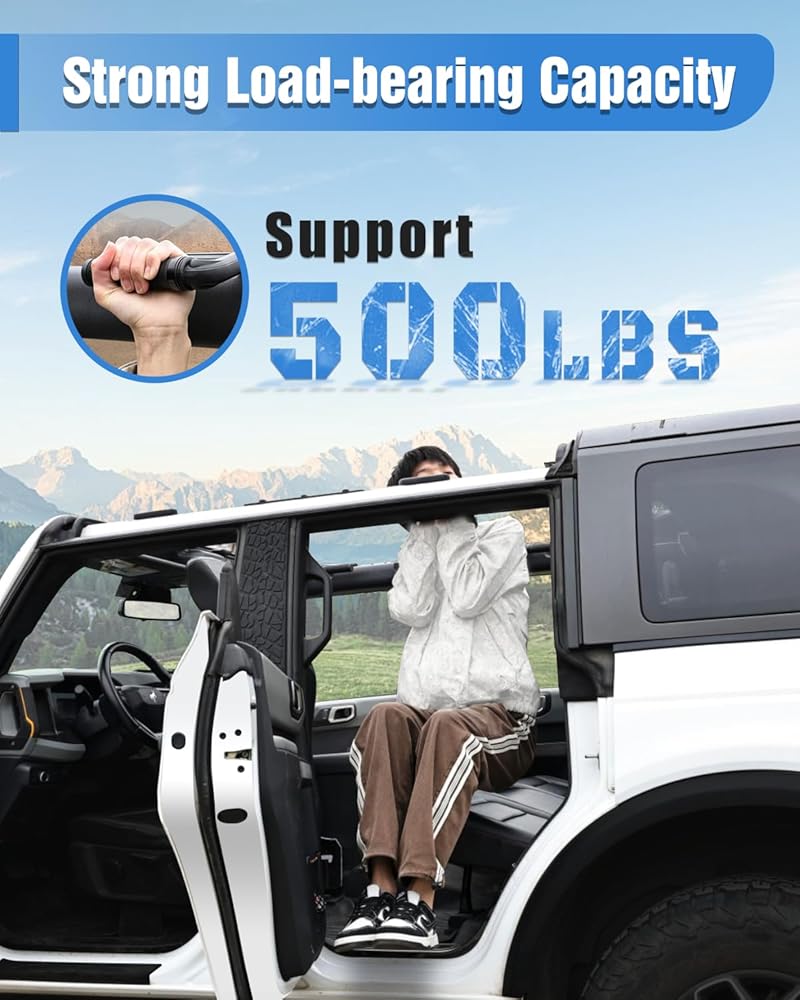 【SAFE DRIVING】This Grab handles for Ford Bronco can help remove the insecure feeling when traveling without door and nothing to grab on to. Provide you with strong support as you get on or off the bronco. And when you drive on a bumpy road, you can grasp the handle to make you get better stability and comfort.